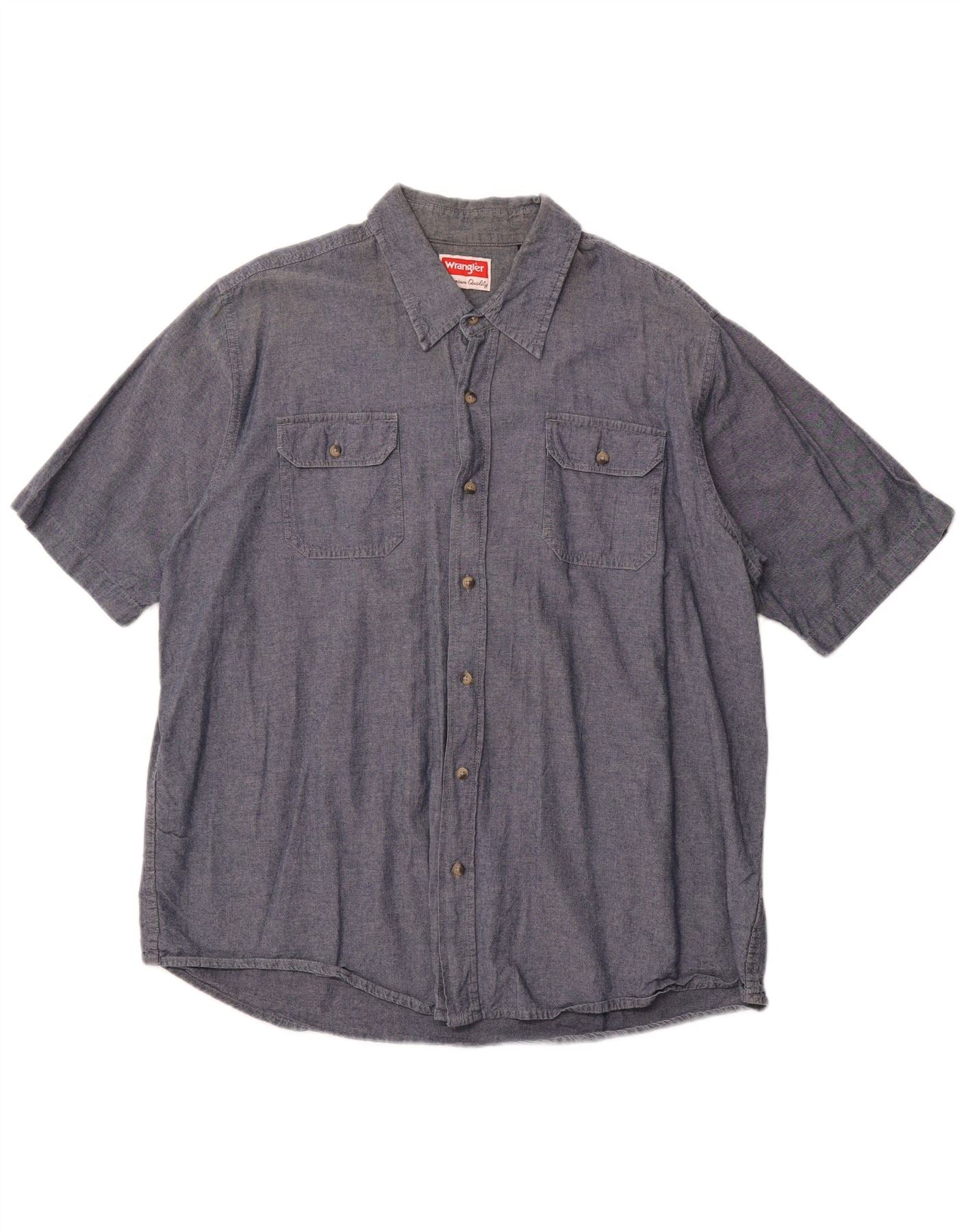 WRANGLER Mens Short Sleeve Shirt 2XL Blue Cotton