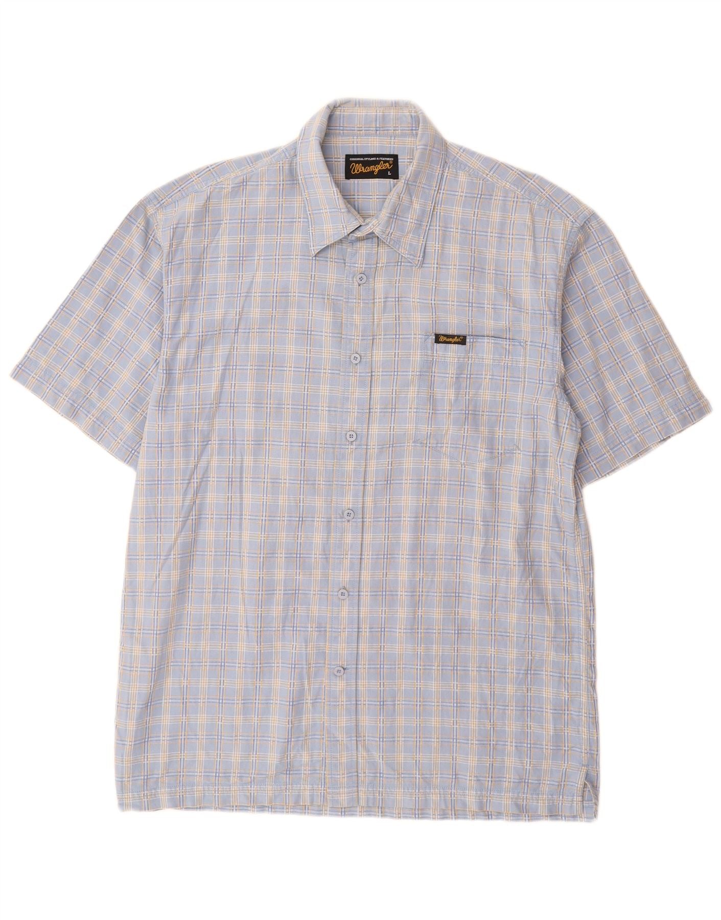 WRANGLER Mens Short Sleeve Shirt Large Blue Check Cotton