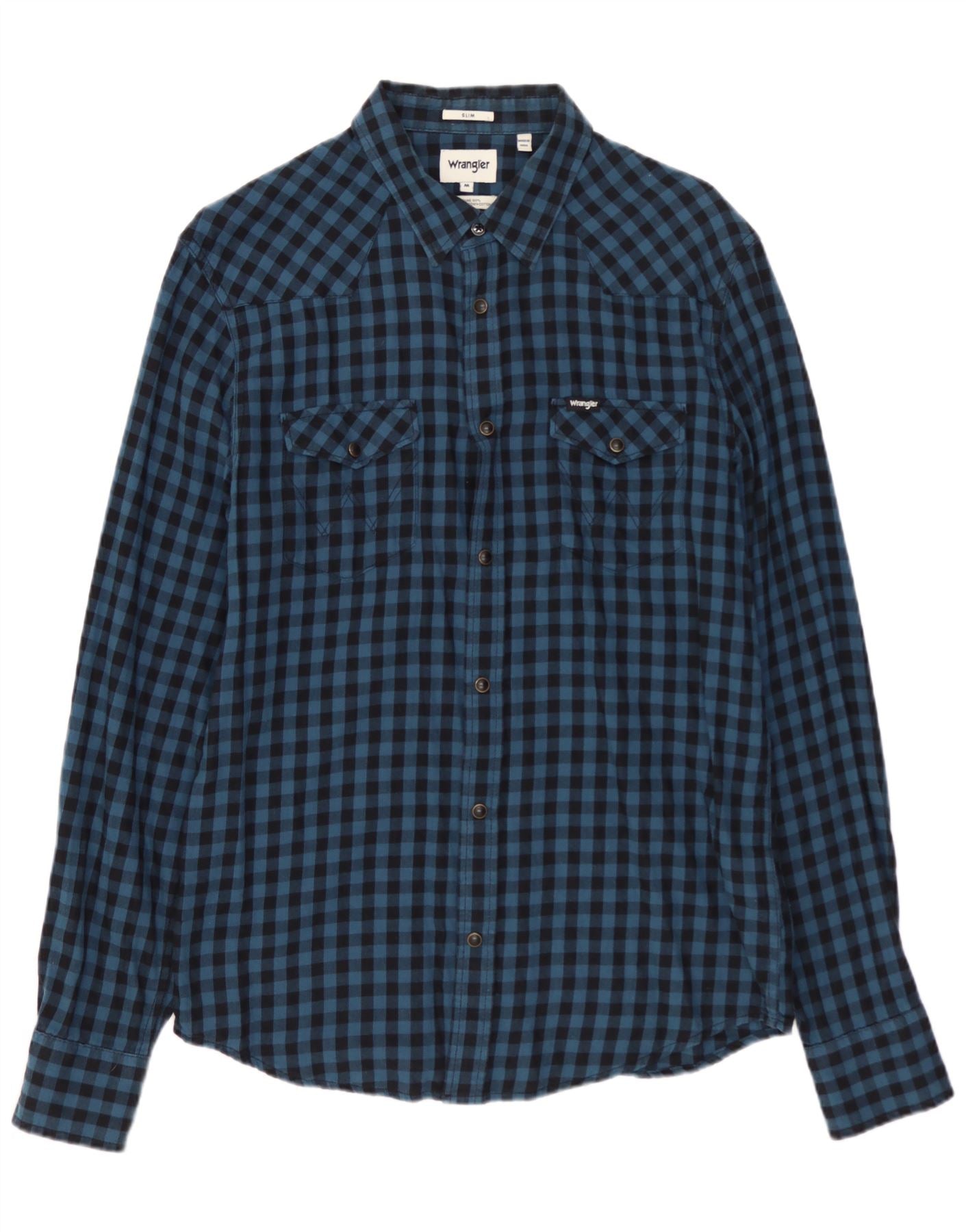 WRANGLER Mens Slim Flannel Shirt Medium Blue Gingham Cotton