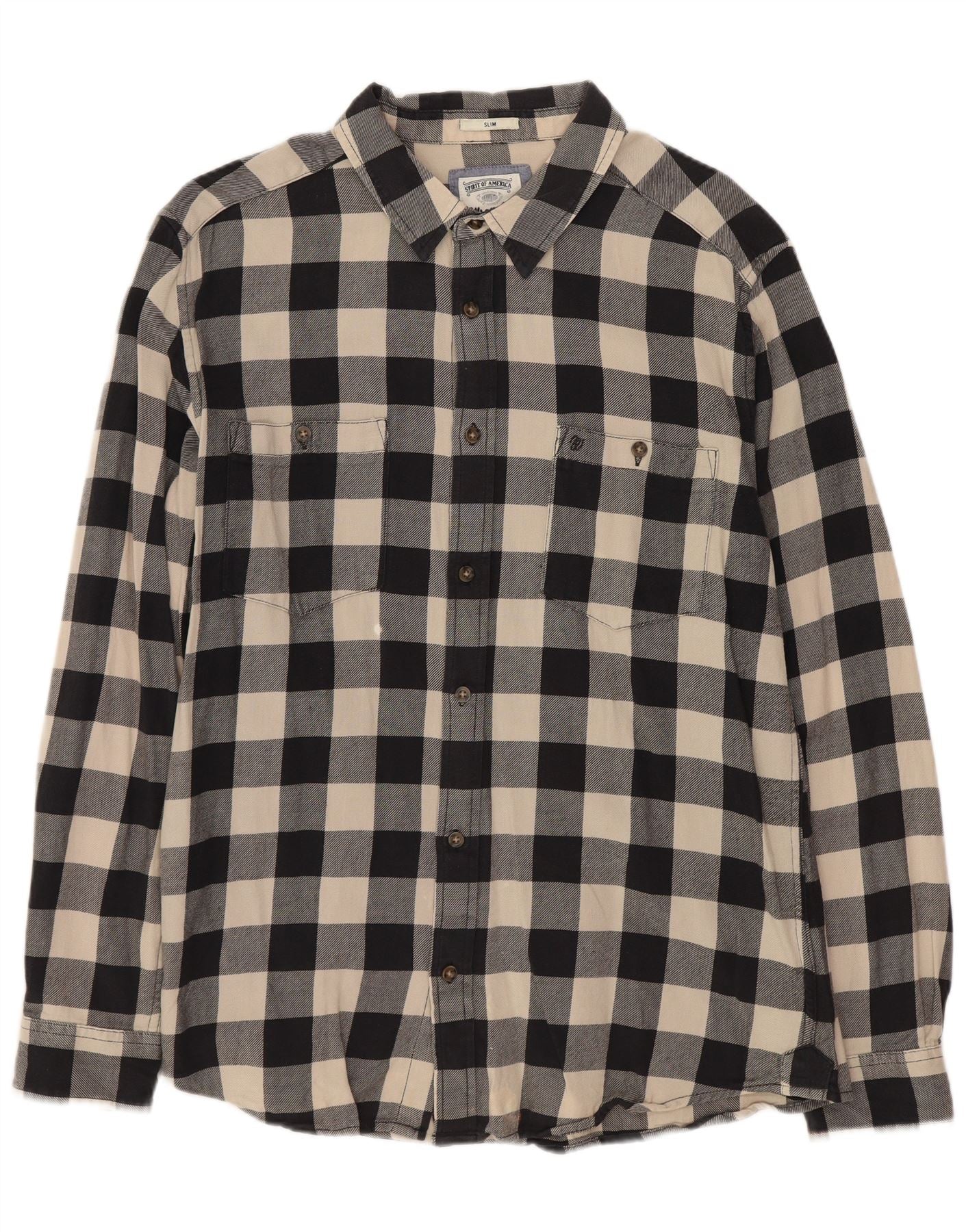 WRANGLER Mens Slim Flannel Shirt XL Black Gingham Cotton
