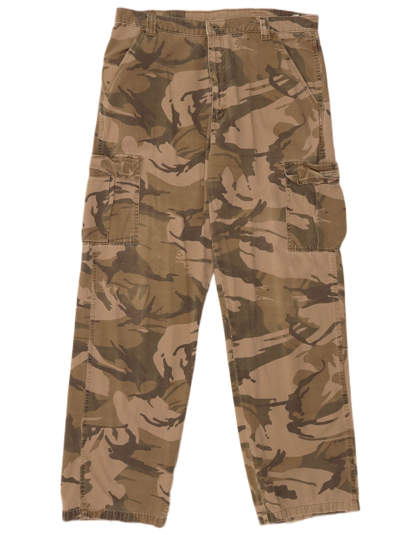 WRANGLER Mens Straight Cargo Trousers W34 L34 Beige Camouflage Cotton