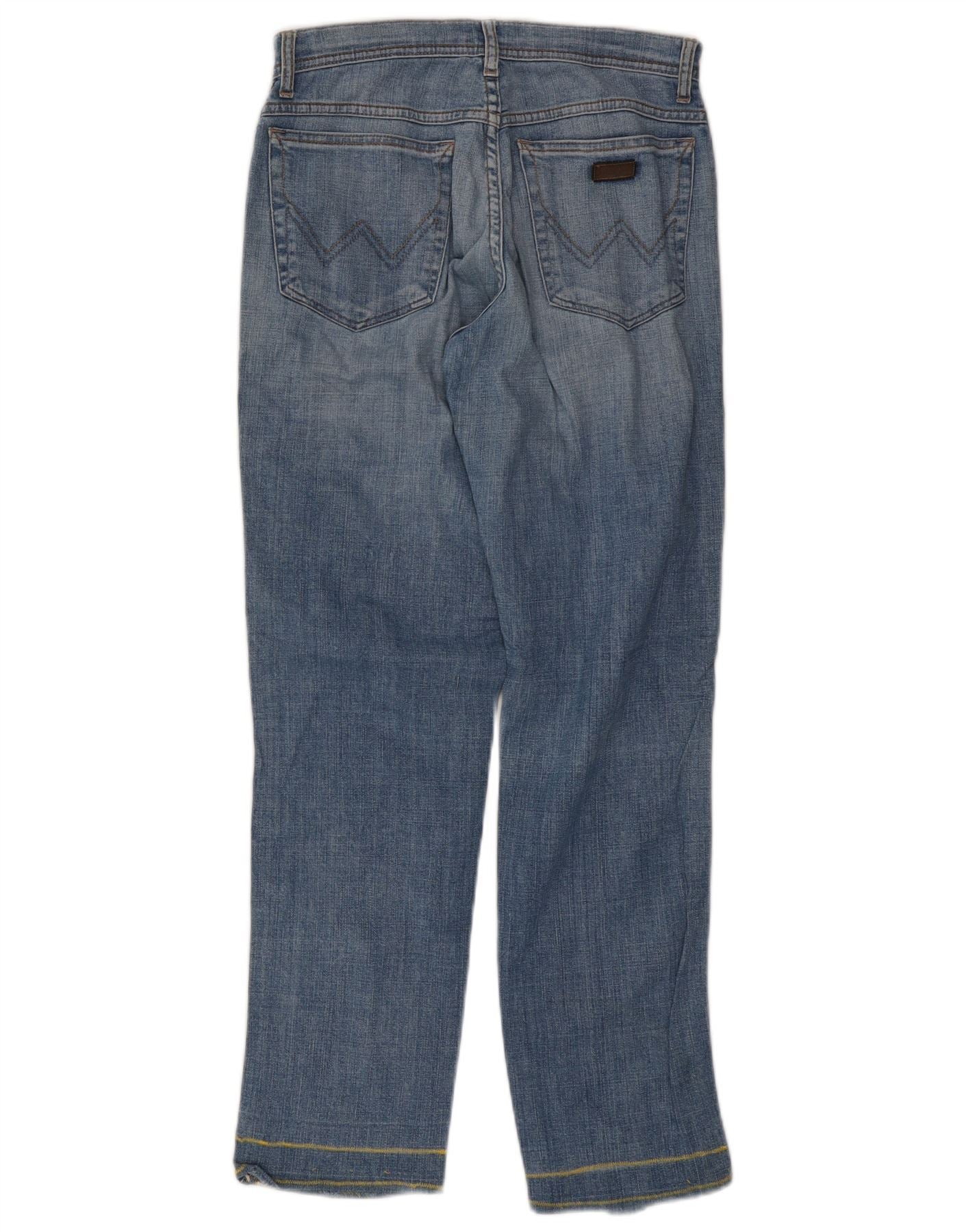 - AI Description: These Wrangler mens straight jeans are crafted from blue stretch denim, offering both durability and comfort. They feature a classic straight leg and a regular fit for a timeless silhouette. The zip closure ensures a secure and neat front. Practical pockets are included, complemented by subtle button accents. The denim has a clean finish, suitable for everyday wear.