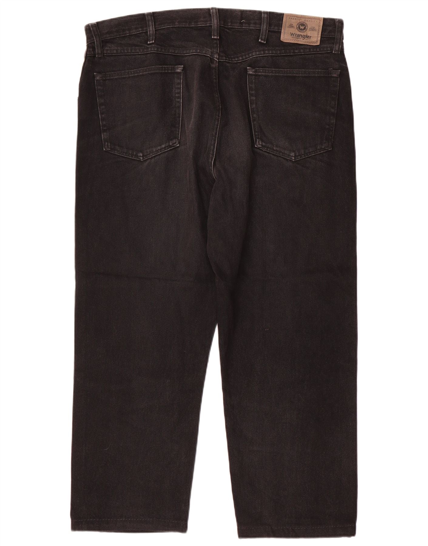 - AI Description: This Wrangler mens straight jeans are crafted from durable black denim, made from 100 percent cotton. They feature a classic regular fit, offering comfort and timeless style. The zip closure ensures a secure and neat front. Practical pockets are included, along with a subtle brand logo accent. These jeans provide a versatile foundation for any casual wardrobe.
