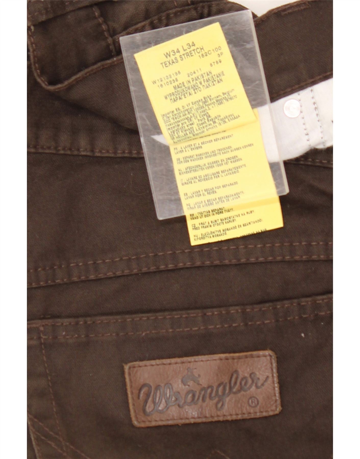 WRANGLER Mens Texas Stretch Straight Casual Trousers W34 L34 Brown Cotton