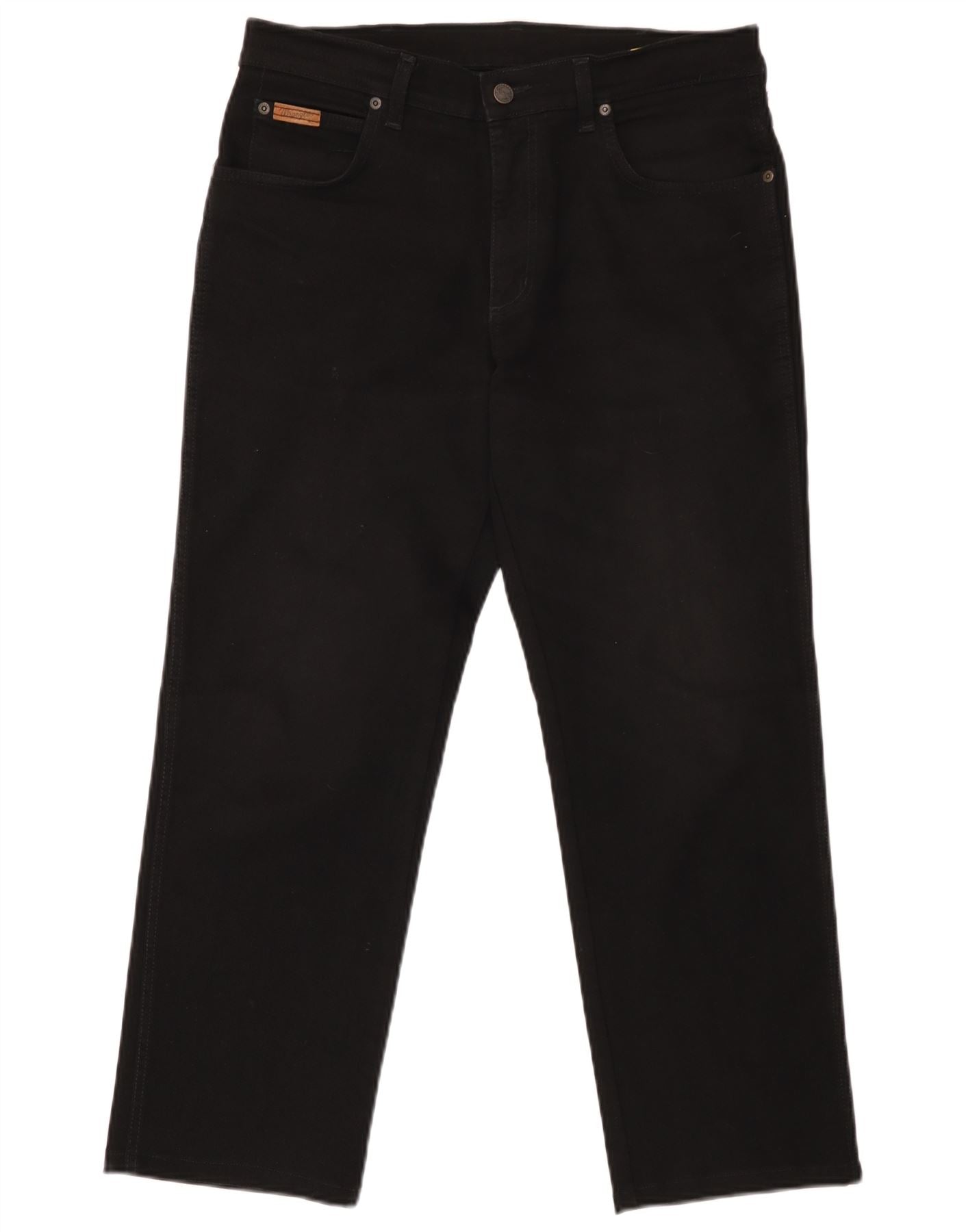 WRANGLER Mens Texas Stretch Straight Jeans W33 L27 Black Cotton