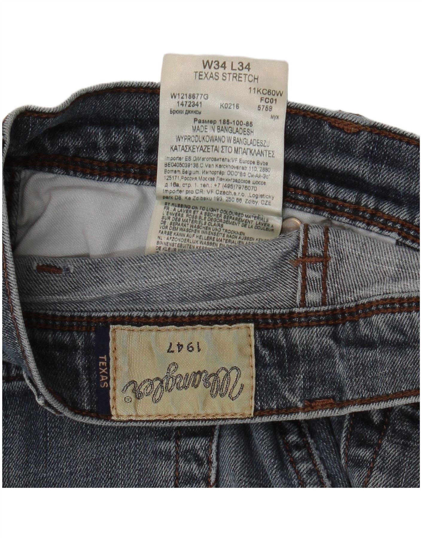 WRANGLER Mens Texas Stretch Straight Jeans W34 L34 Blue Cotton