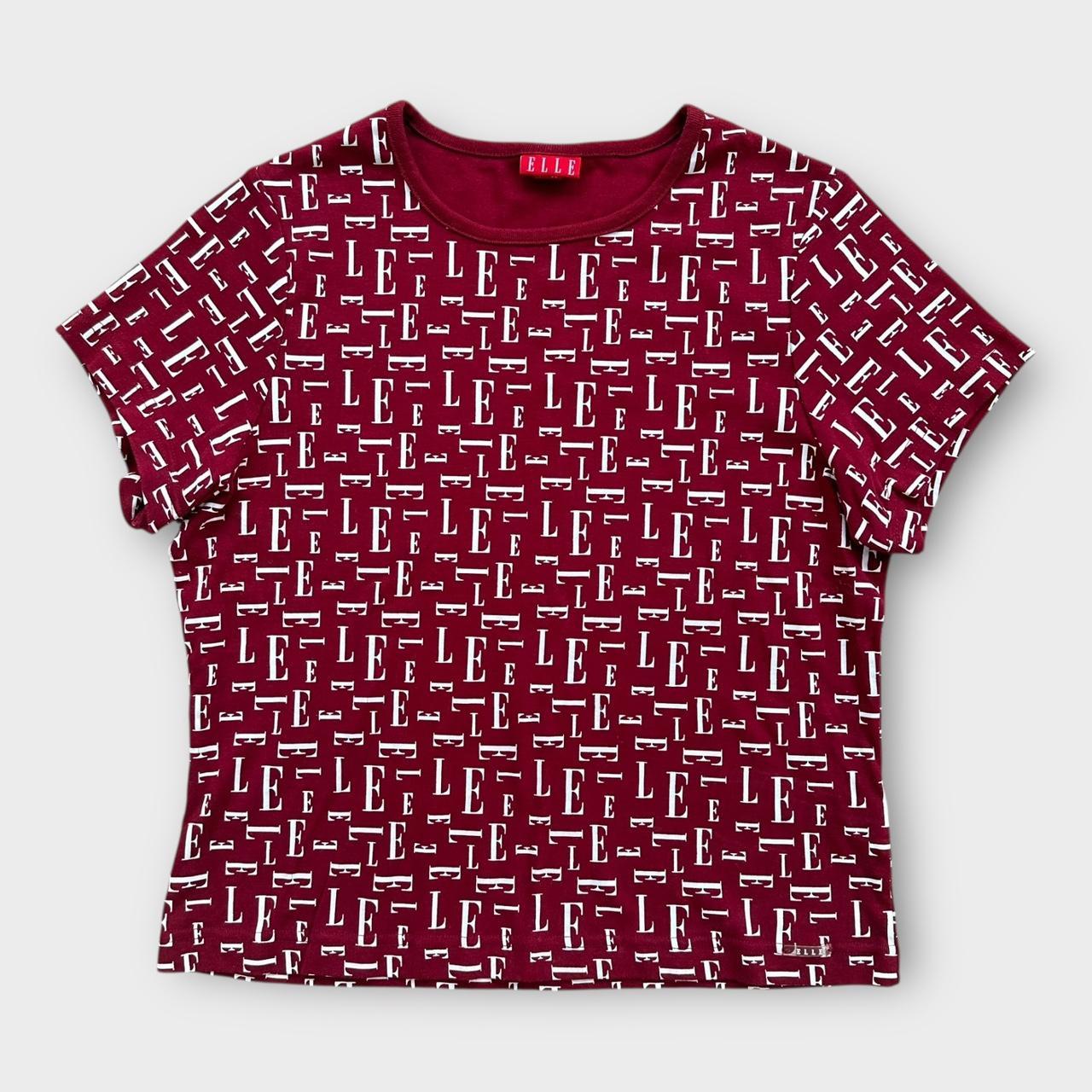 Vintage early 2000’s Y2K Elle monogram all over print top in red and white