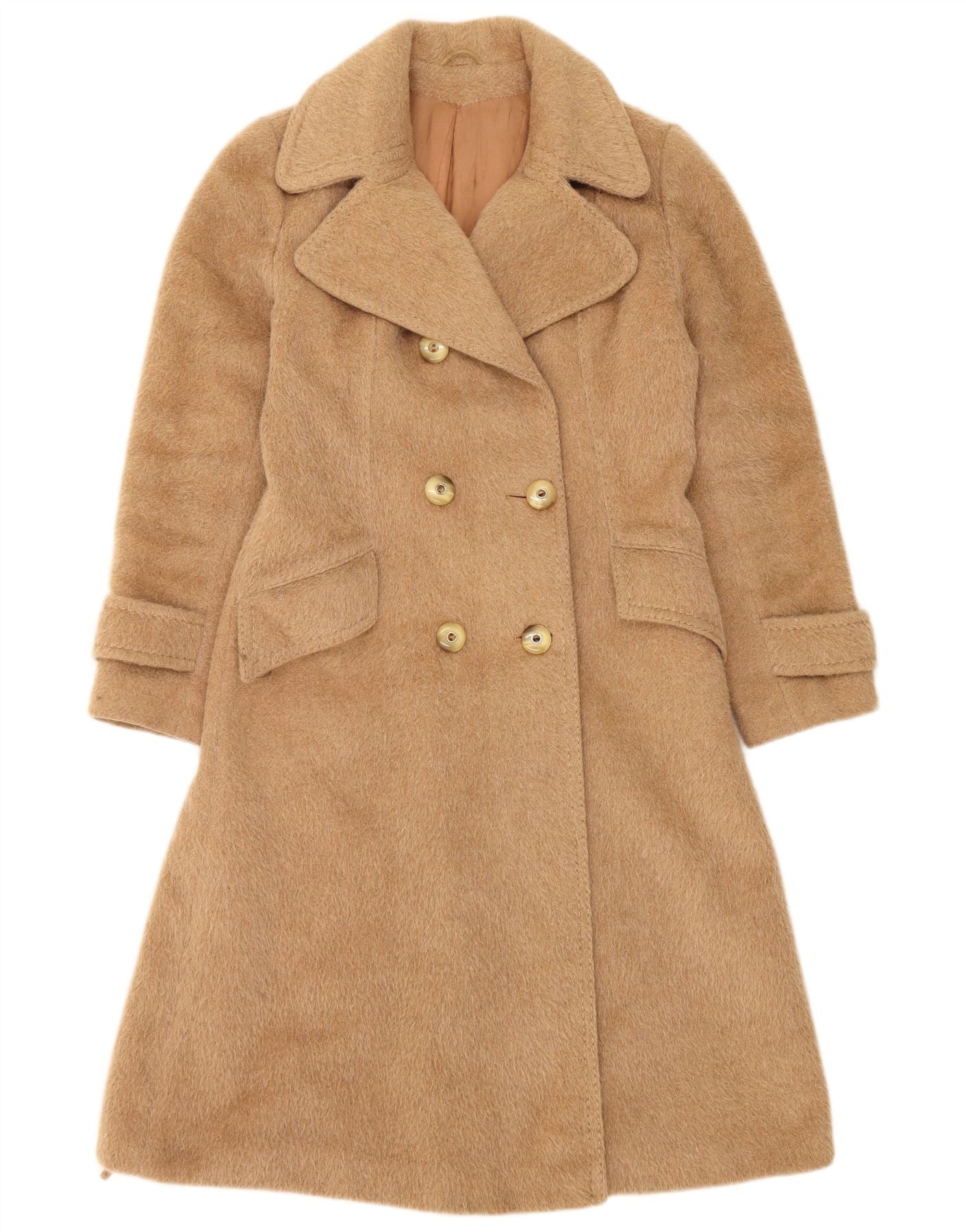 YOUR SIXTH SENSE Womens Double Breasted Coat UK 12 Medium Beige Mohair