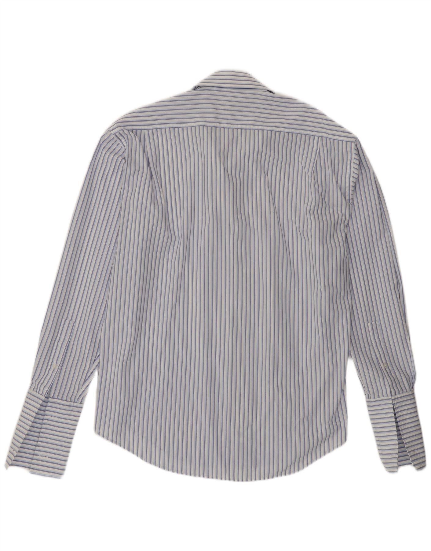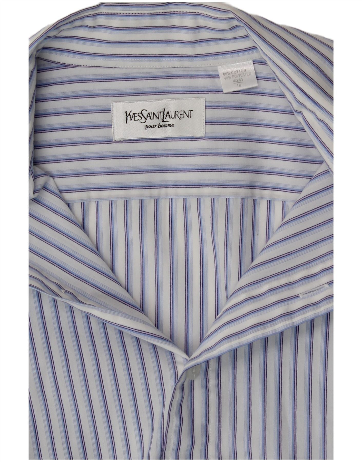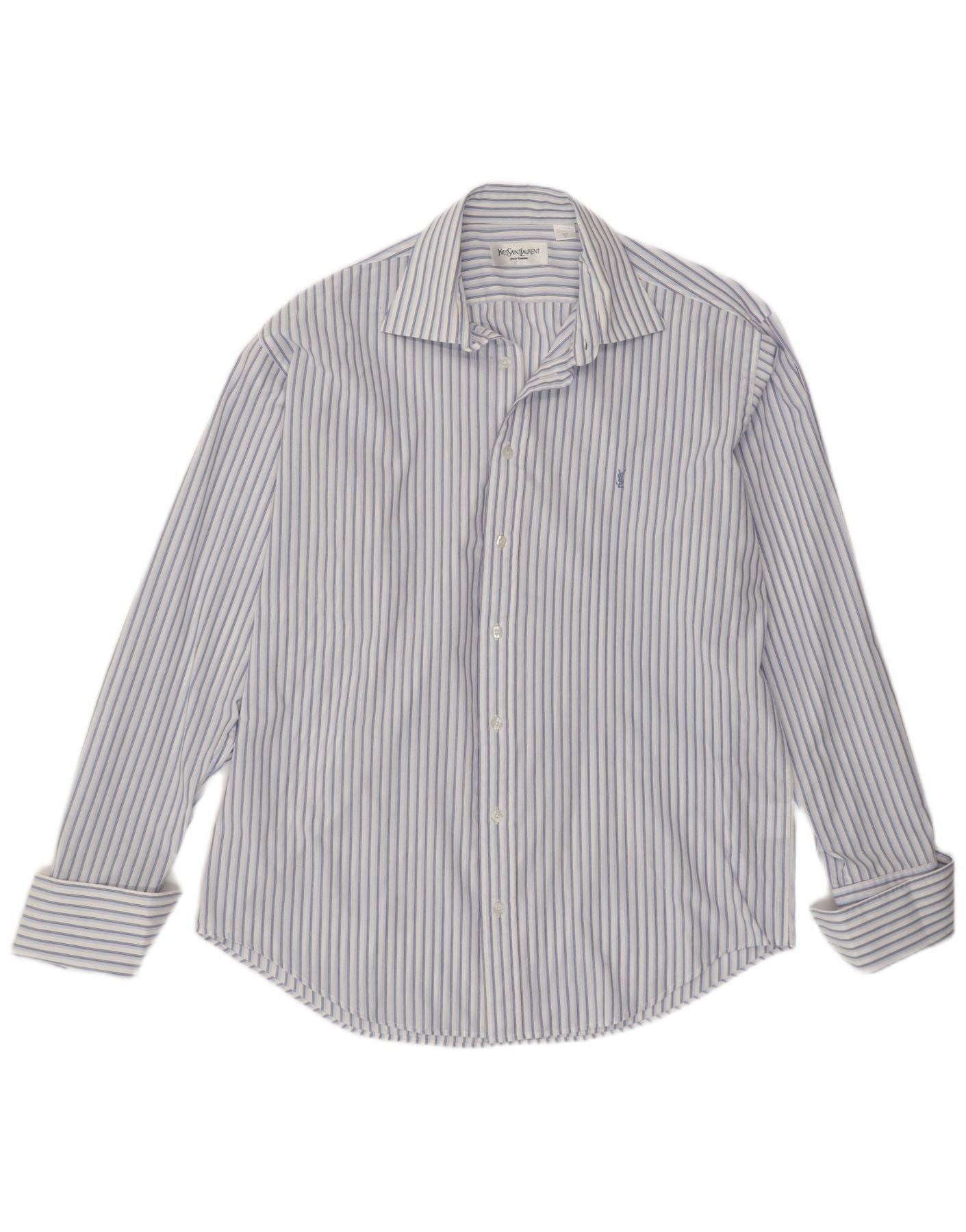 YVES SAINT LAURENT Mens Shirt Size 16 40/41 Large Blue Striped Cotton