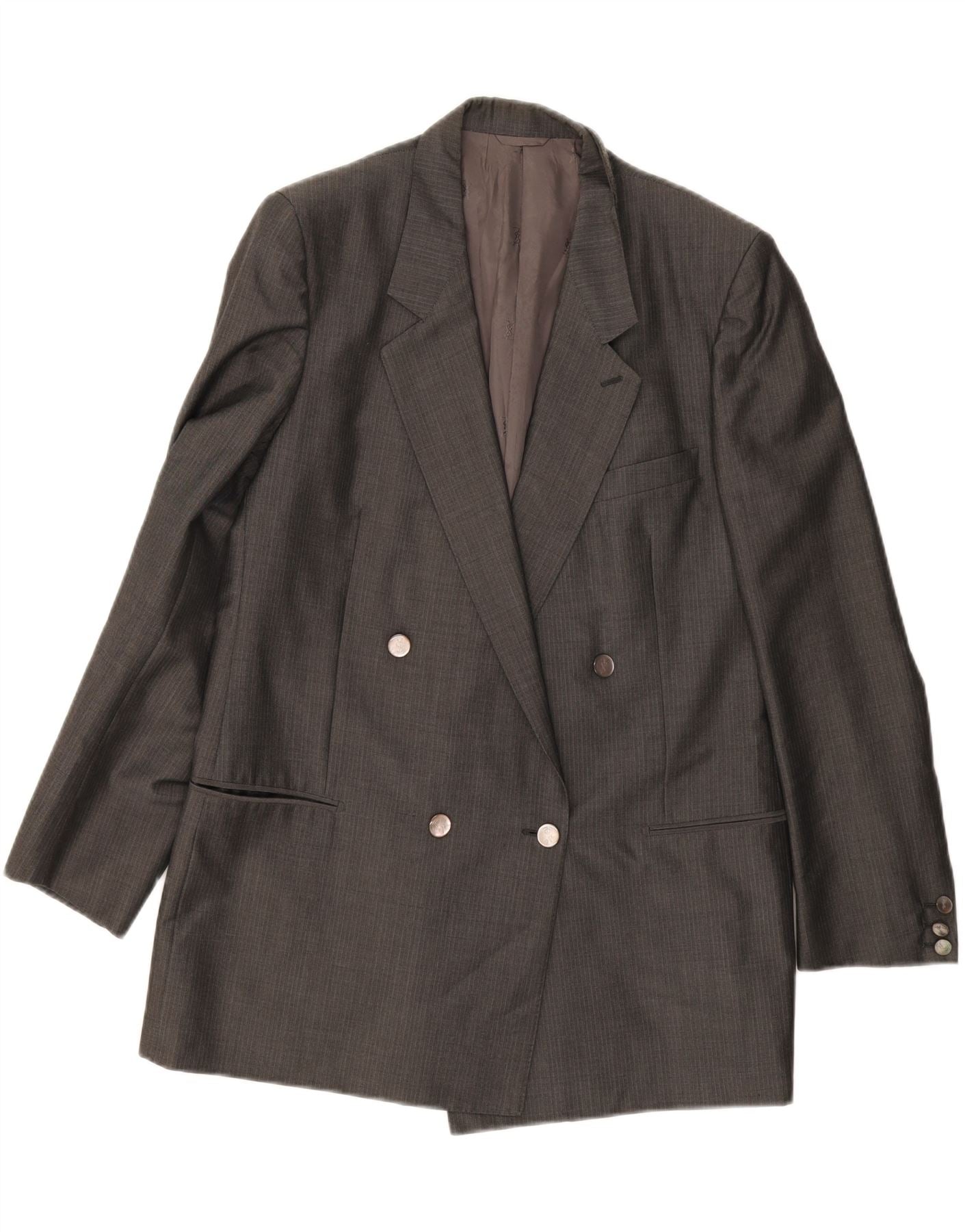 YVES SAINT LAURENT Womens Double Breasted Blazer Jacket UK 16 Large Grey