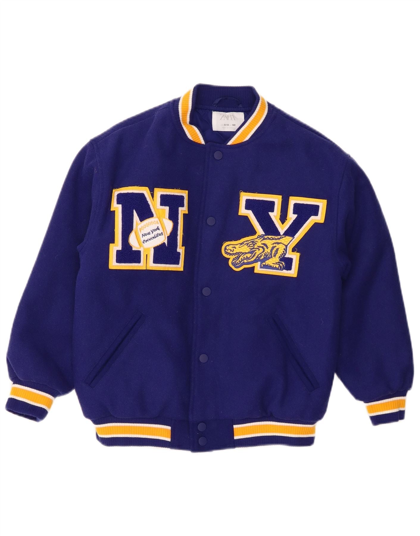 ZARA Girls New York Crocodiles Graphic Varsity Jacket 9-10 Years Navy Blue