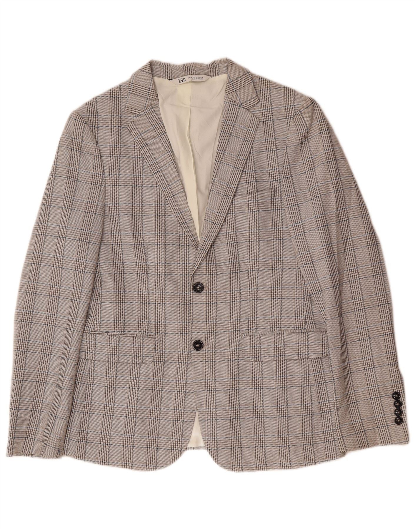 ZARA Mens 2 Button Blazer Jacket EU 48 Medium Grey Houndstooth Polyester