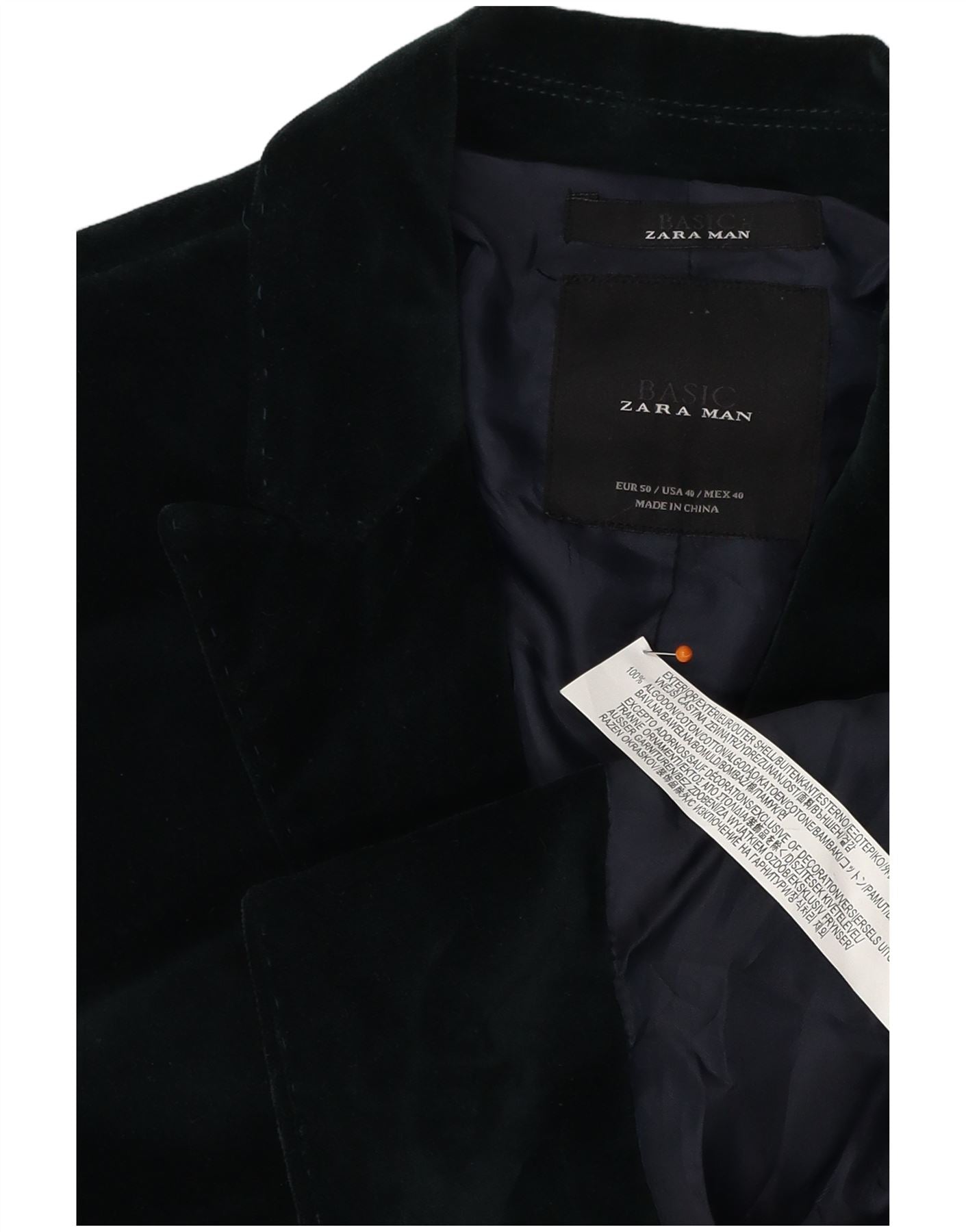 ZARA Mens 2 Button Velvet Blazer Jacket EU 50 Medium Green Cotton