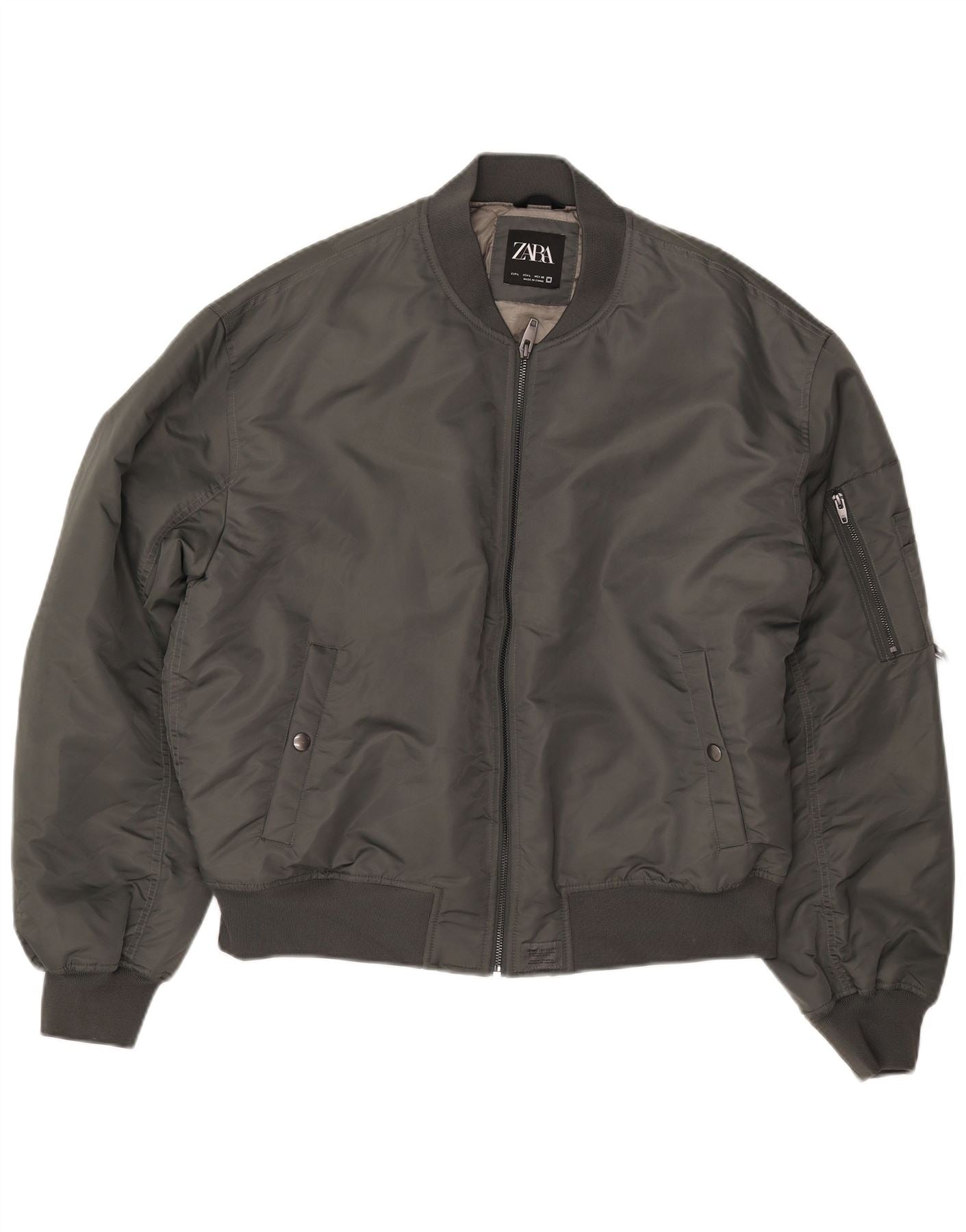 ZARA Mens Bomber Jacket UK 40 Large Grey Polyester