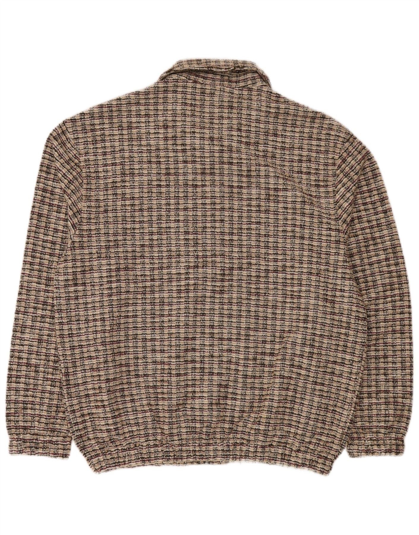 Zara Mens Cardigan Sweater Large Beige Plaid Polyester