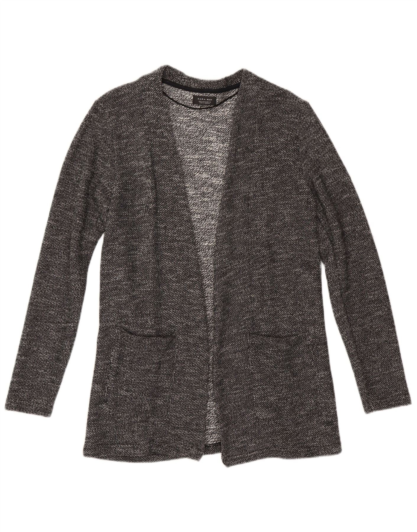 Zara Mens Cardigan Sweater Small Black Flecked Cotton