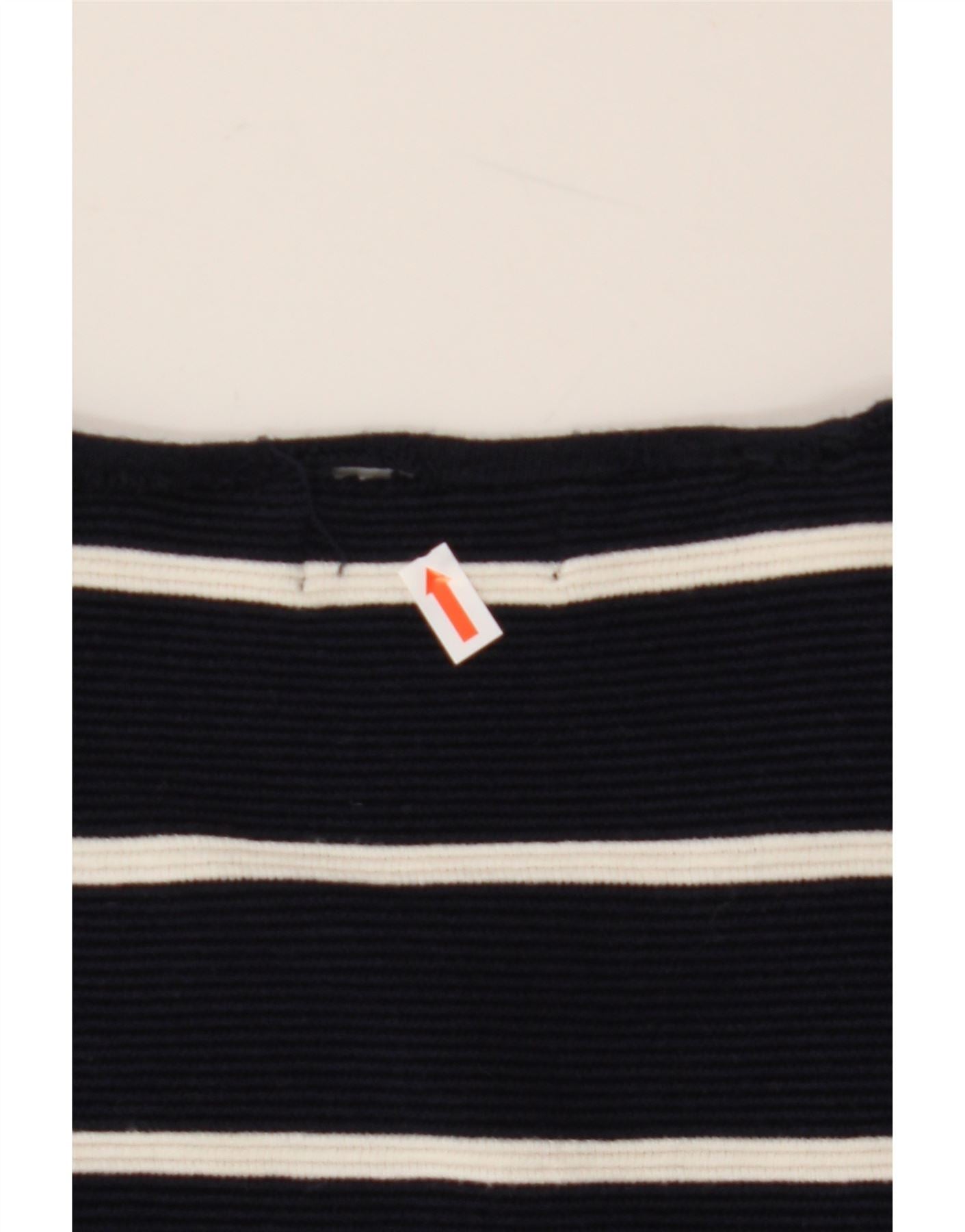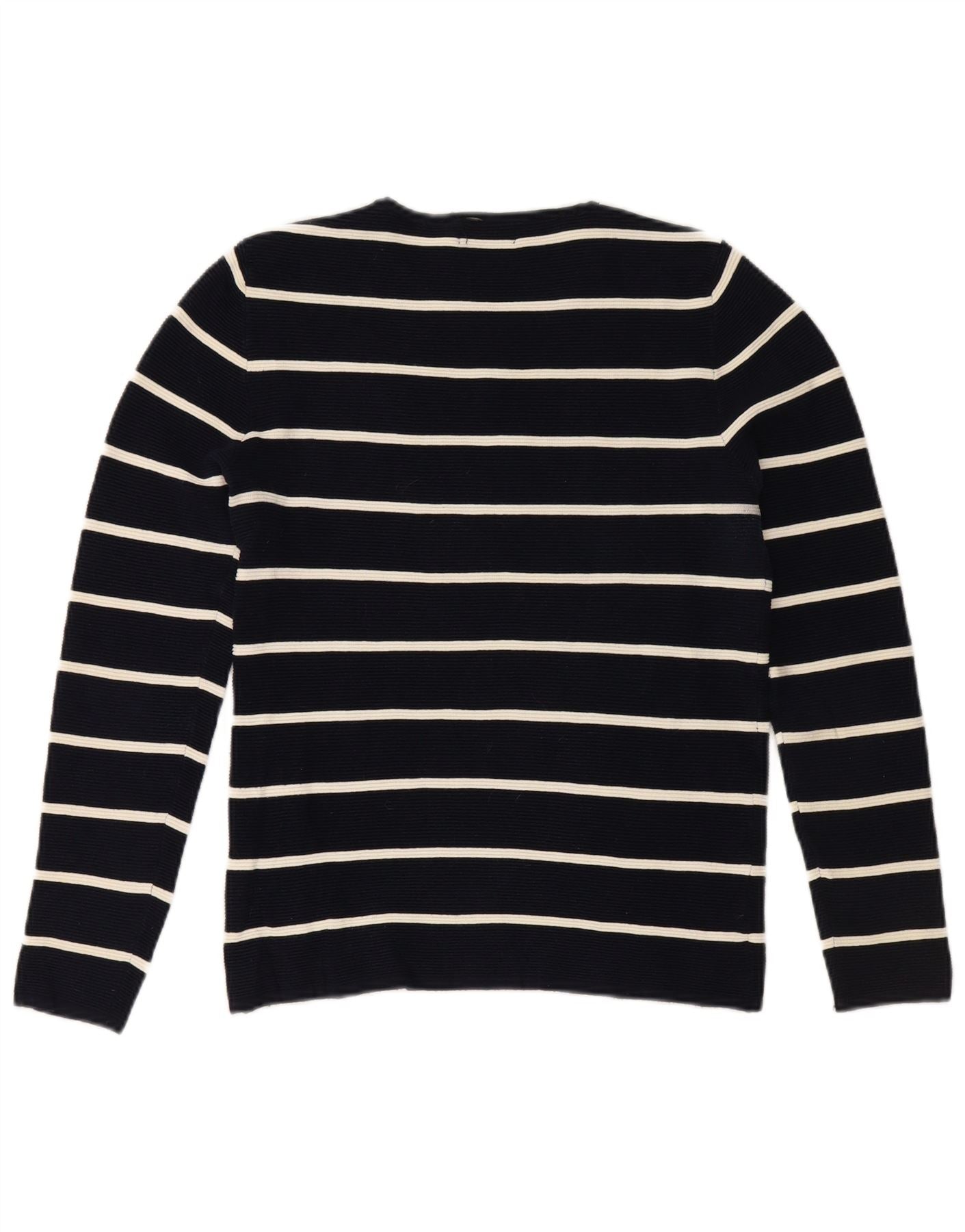 ZARA Mens Crew Neck Jumper Sweater Medium Navy Blue Striped Cotton