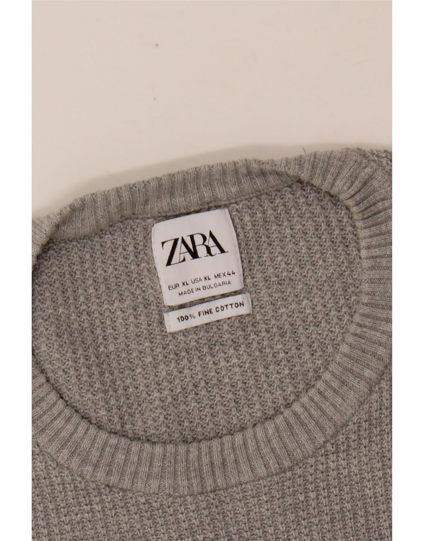 ZARA Mens Crew Neck Jumper Sweater XL Grey Cotton