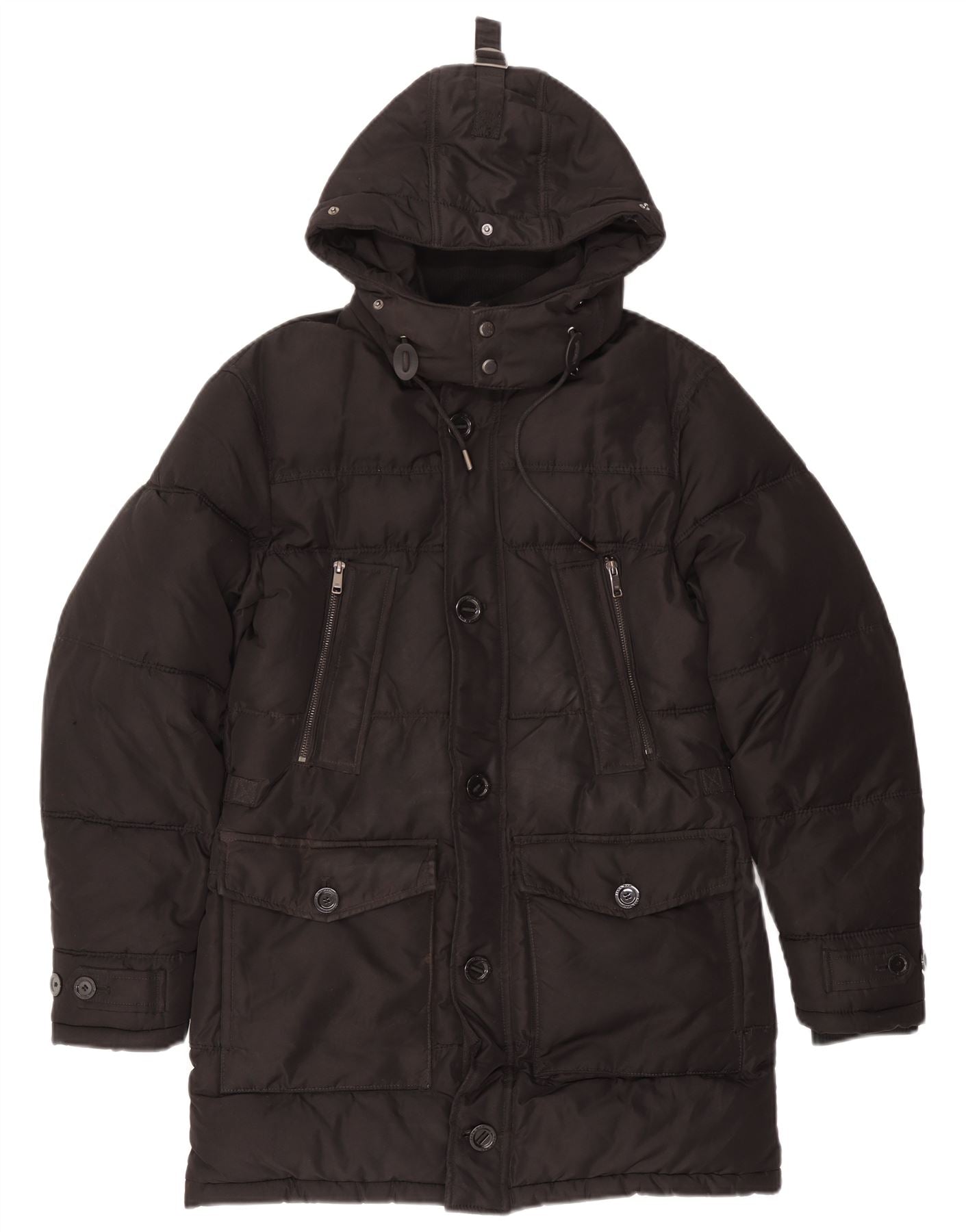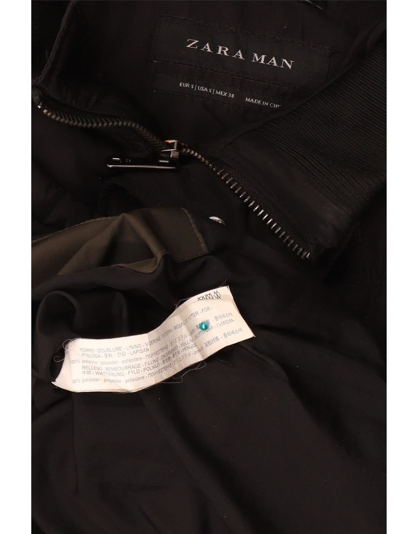 Zara Mens Hooded Padded Coat UK 36 Small Black Polyester