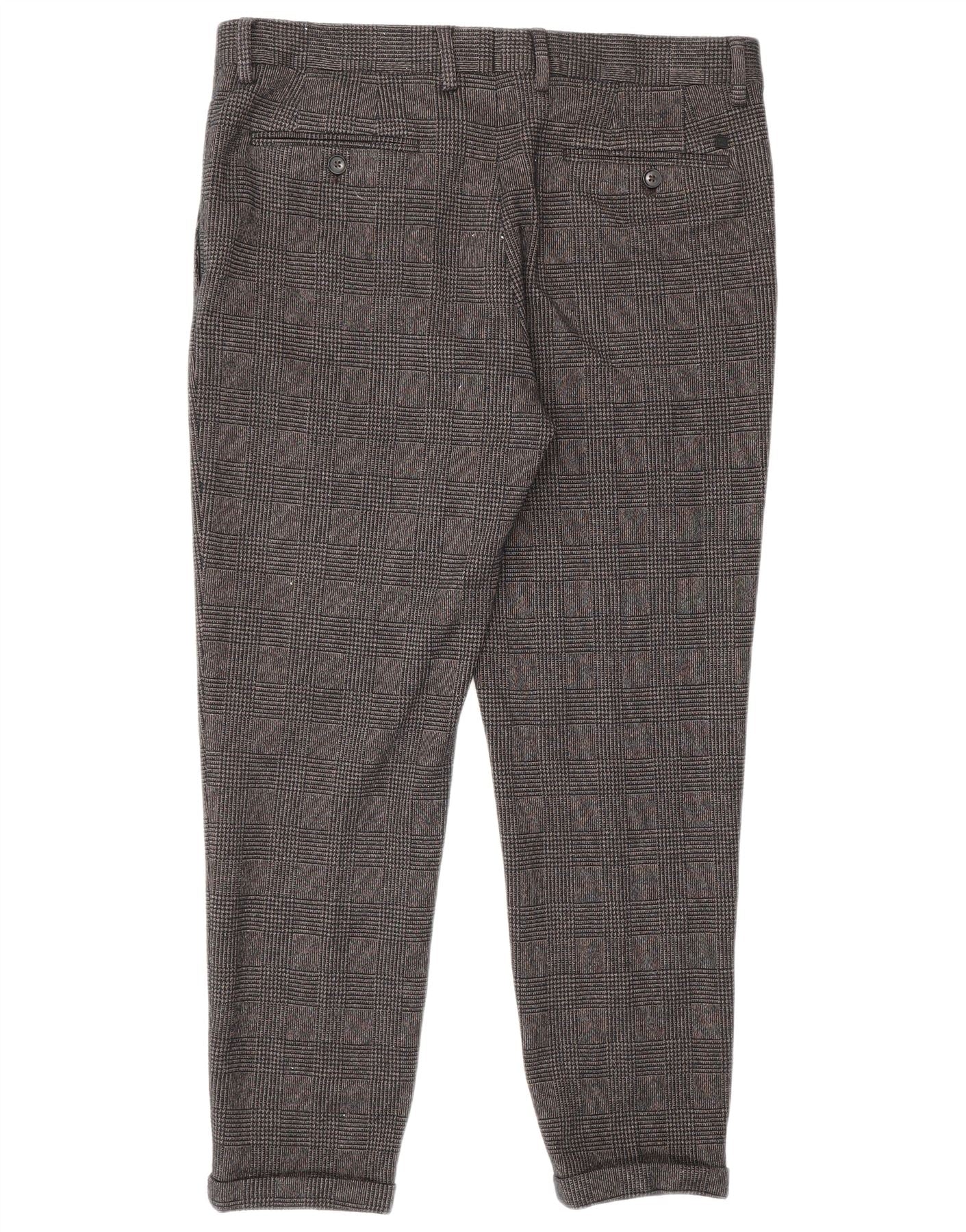 ZARA Mens Slim Chino Trousers EU 44 Large W34 L27 Grey Houndstooth