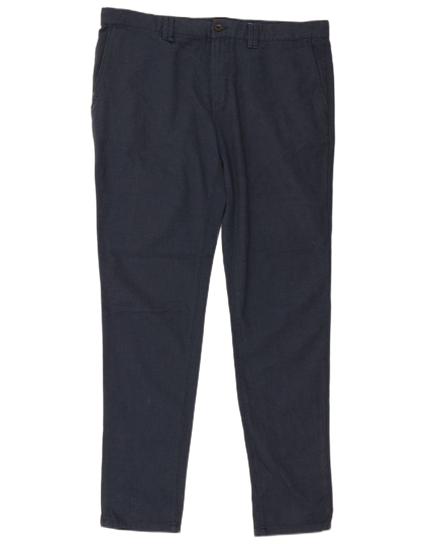 ZARA Mens Slim Chino Trousers EU 46 XL W36 L32 Navy Blue Spotted Cotton