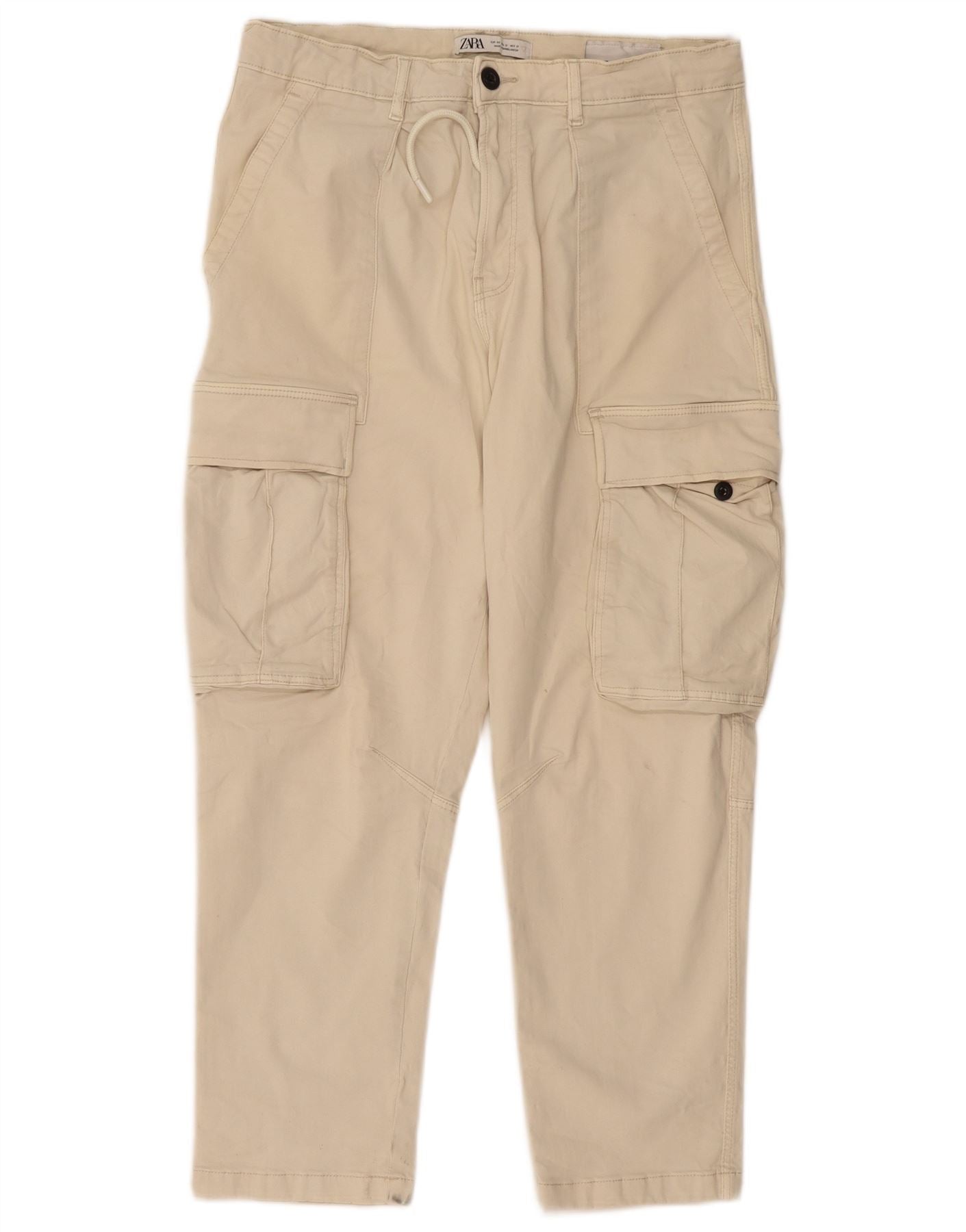 ZARA Mens Straight Cargo Trousers EU 40 Medium W31 L27 Beige Cotton