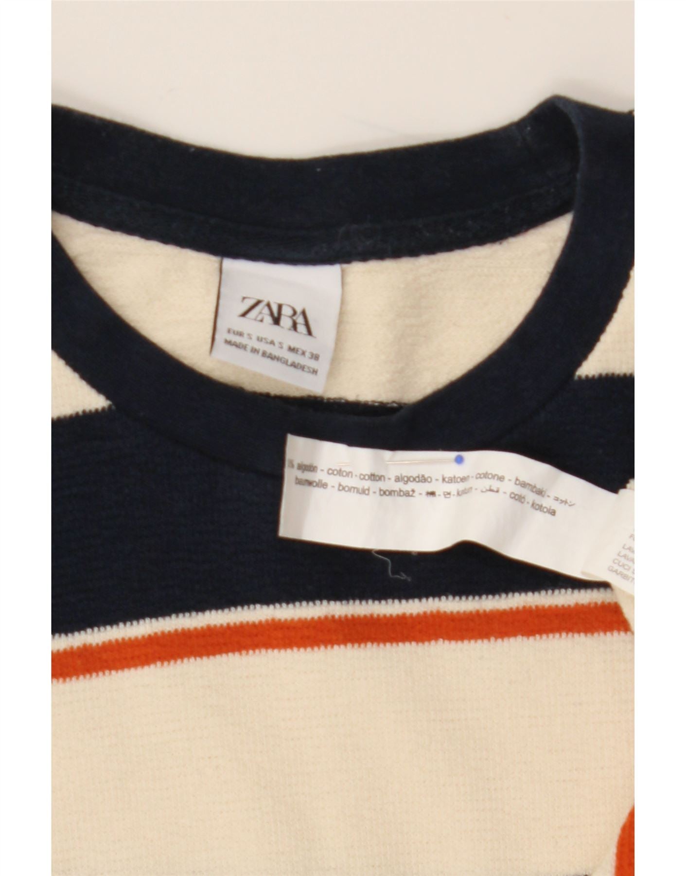 ZARA Mens T-Shirt Top Small Beige Striped Cotton
