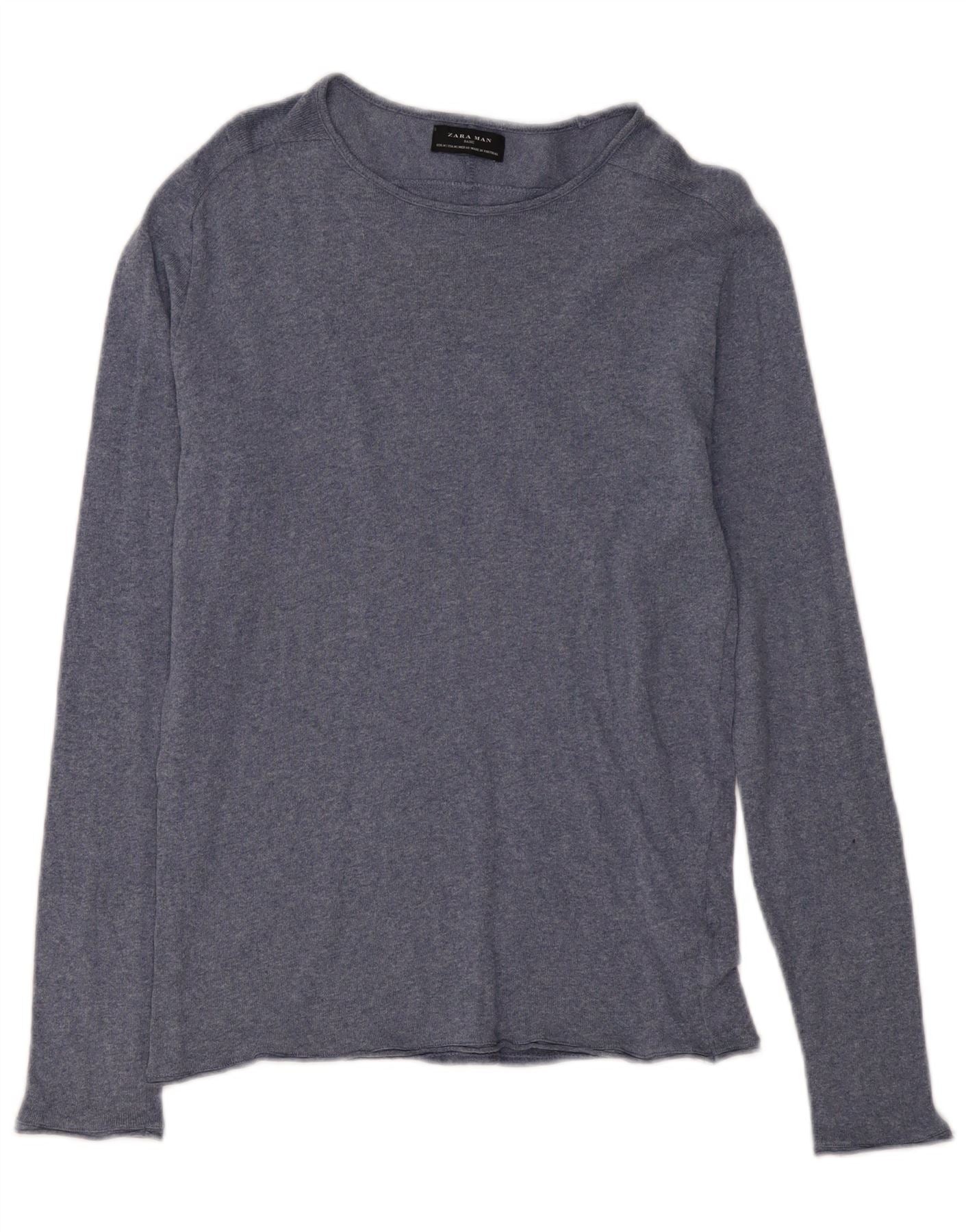 ZARA Mens Top Long Sleeve Medium Blue Cotton
