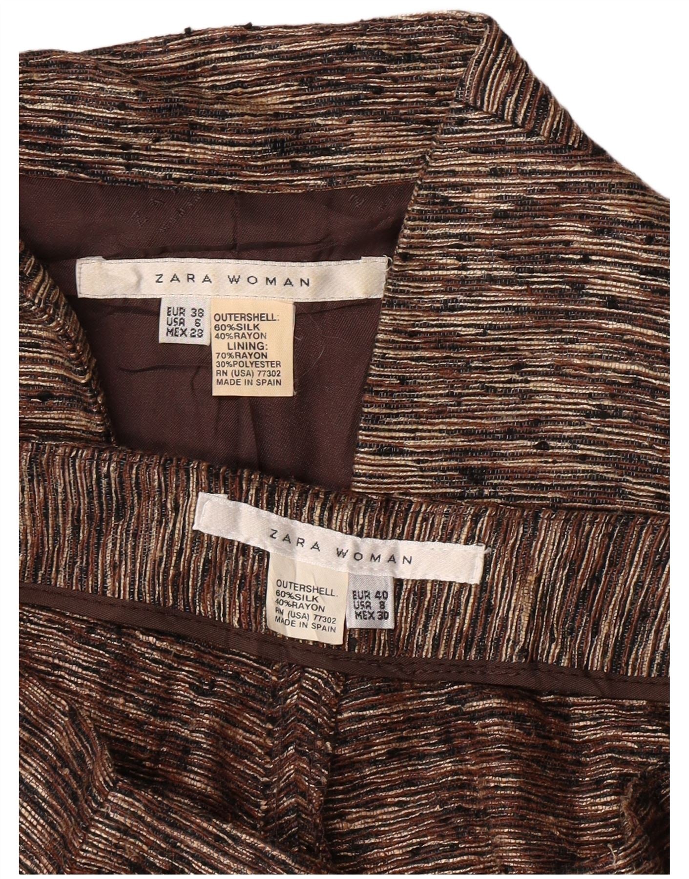 ZARA Womens 1 Button 2 Piece Suit EU 40 Medium W30 L34 Brown Flecked Silk