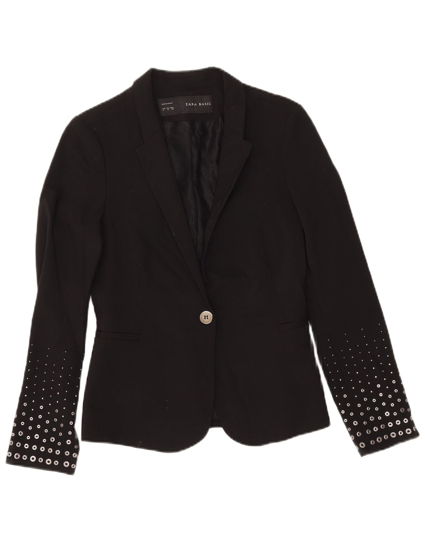 ZARA Womens 1 Button Blazer Jacket UK 12 Medium Black Polyester