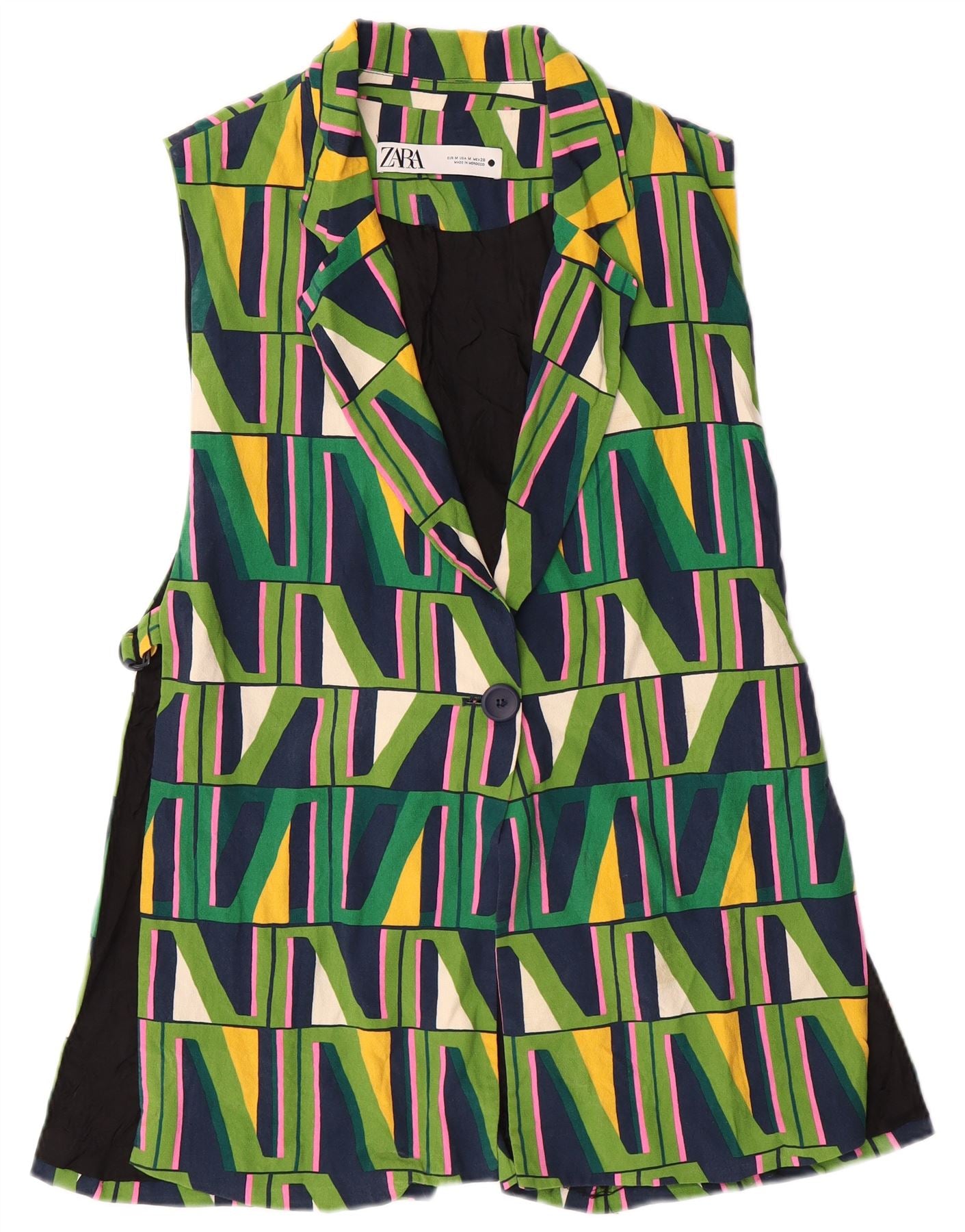 ZARA Womens 1 Button Blazer Jacket UK 12 Medium Multicoloured Geometric