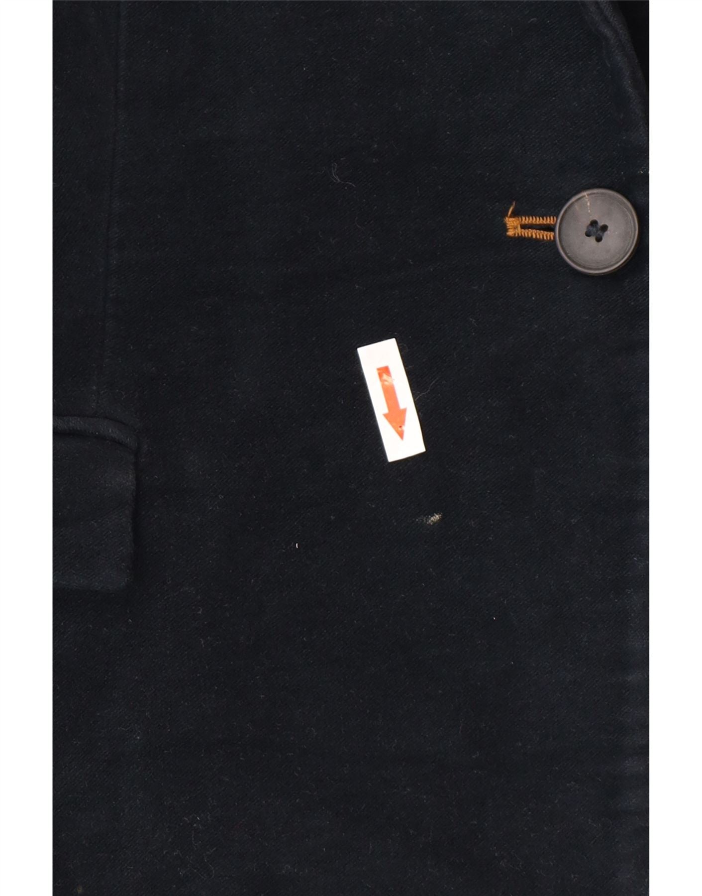 - AI Description: This Zara womens blazer jacket is crafted from rich navy blue corduroy, offering a distinctive textured finish. It features a classic collared neckline and long sleeves. A single button closure creates a streamlined front. Practical pockets are included. Subtle elbow patches add a refined, classic detail. The regular fit ensures comfortable wear and a timeless silhouette.