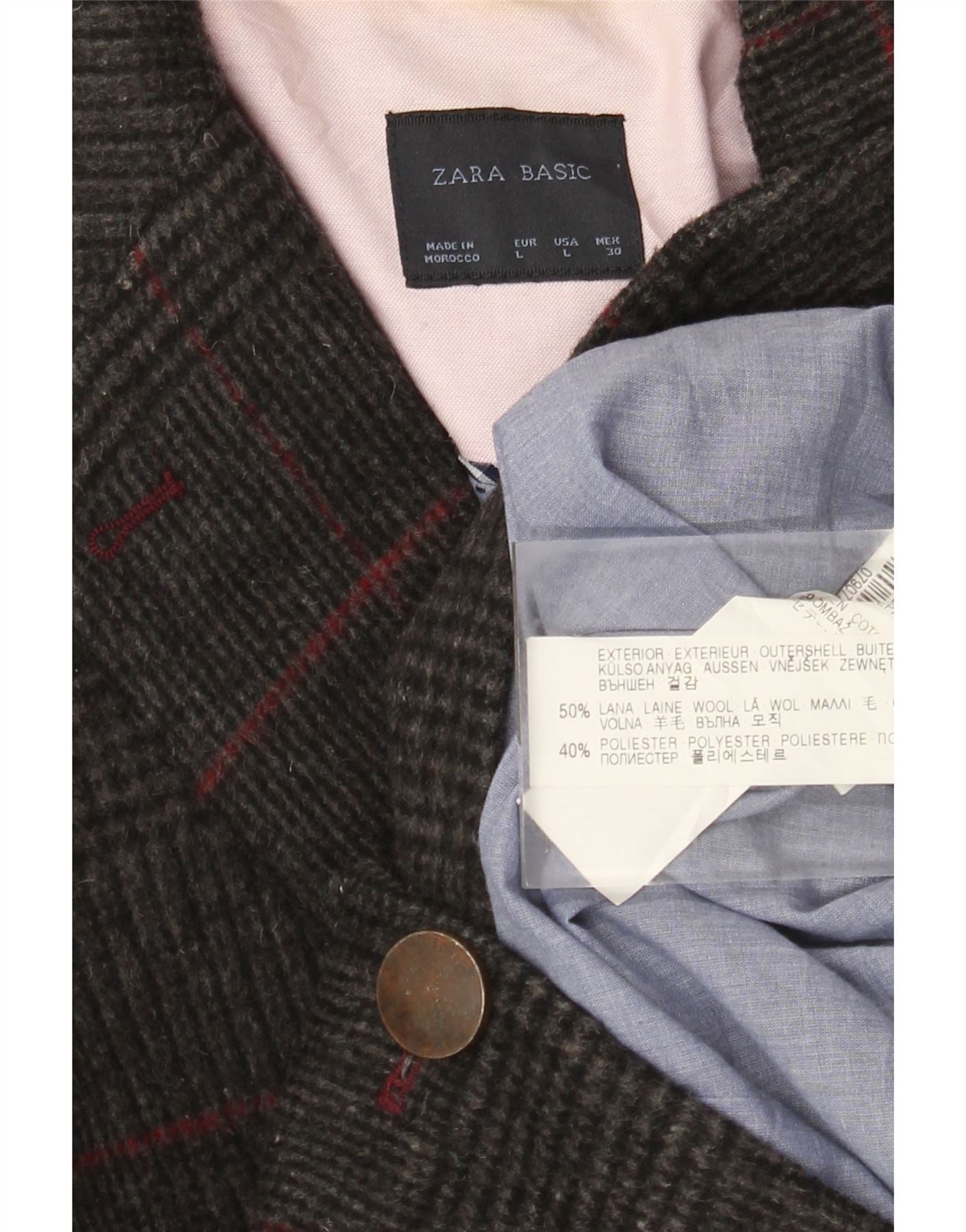 Zara Womens 1 Button Blazer Jacket UK 14 Large Grey Check Wool