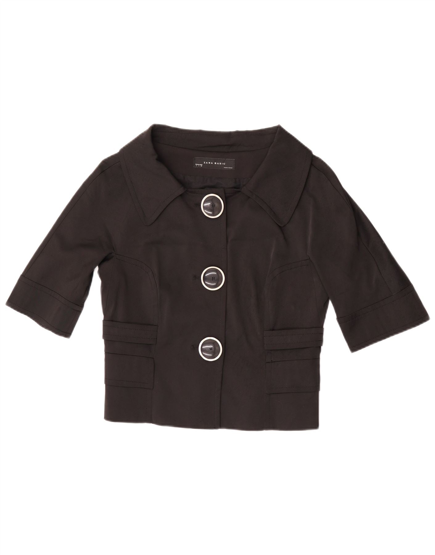 Zara Womens 3/4 Sleeve 3 Button Bolero Jacket UK 14 Large Black Cotton