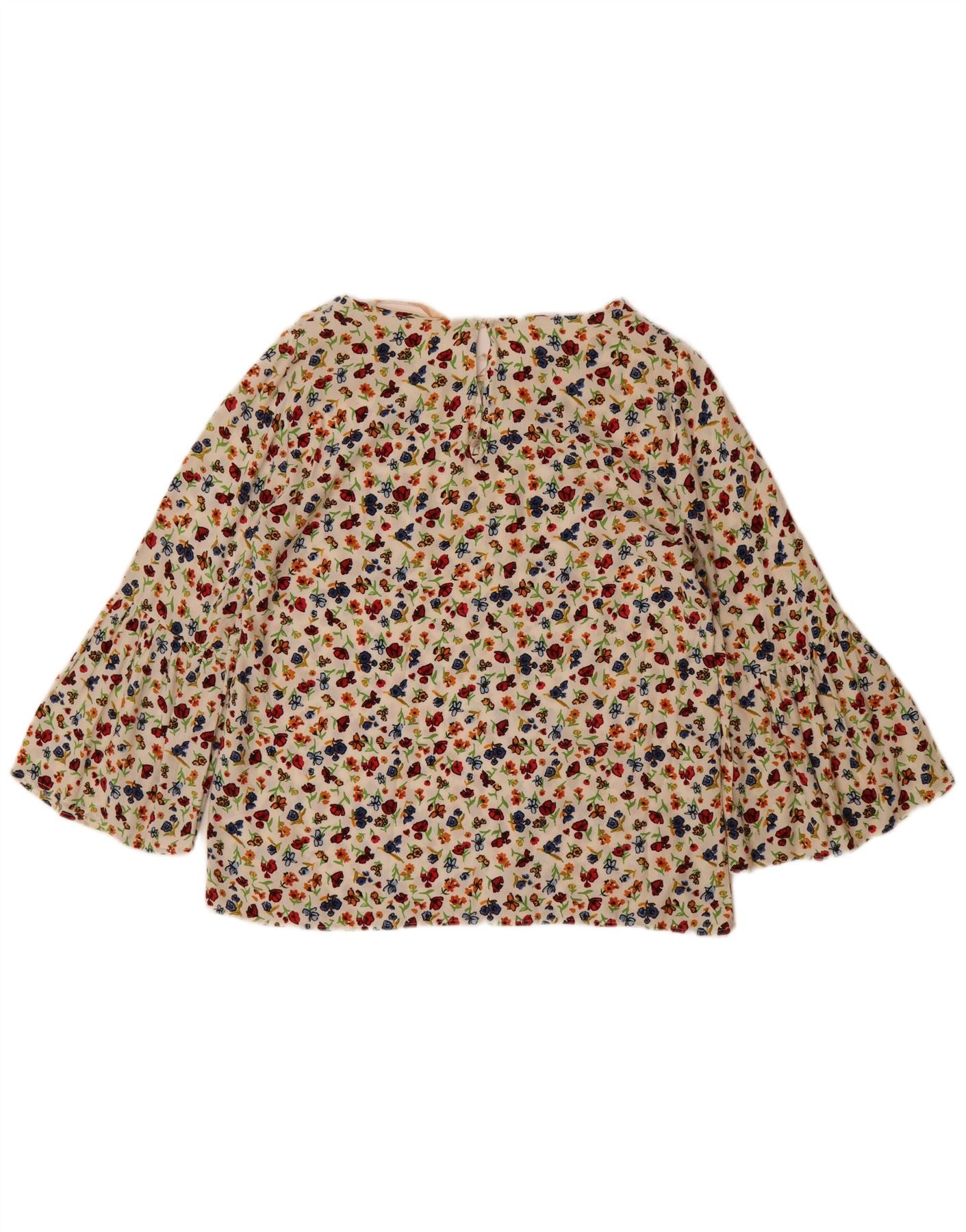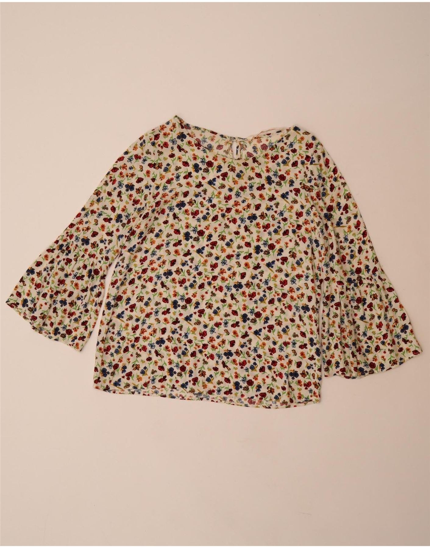ZARA Womens 3/4 Sleeve Blouse Top UK 10 Small Off White Floral Viscose