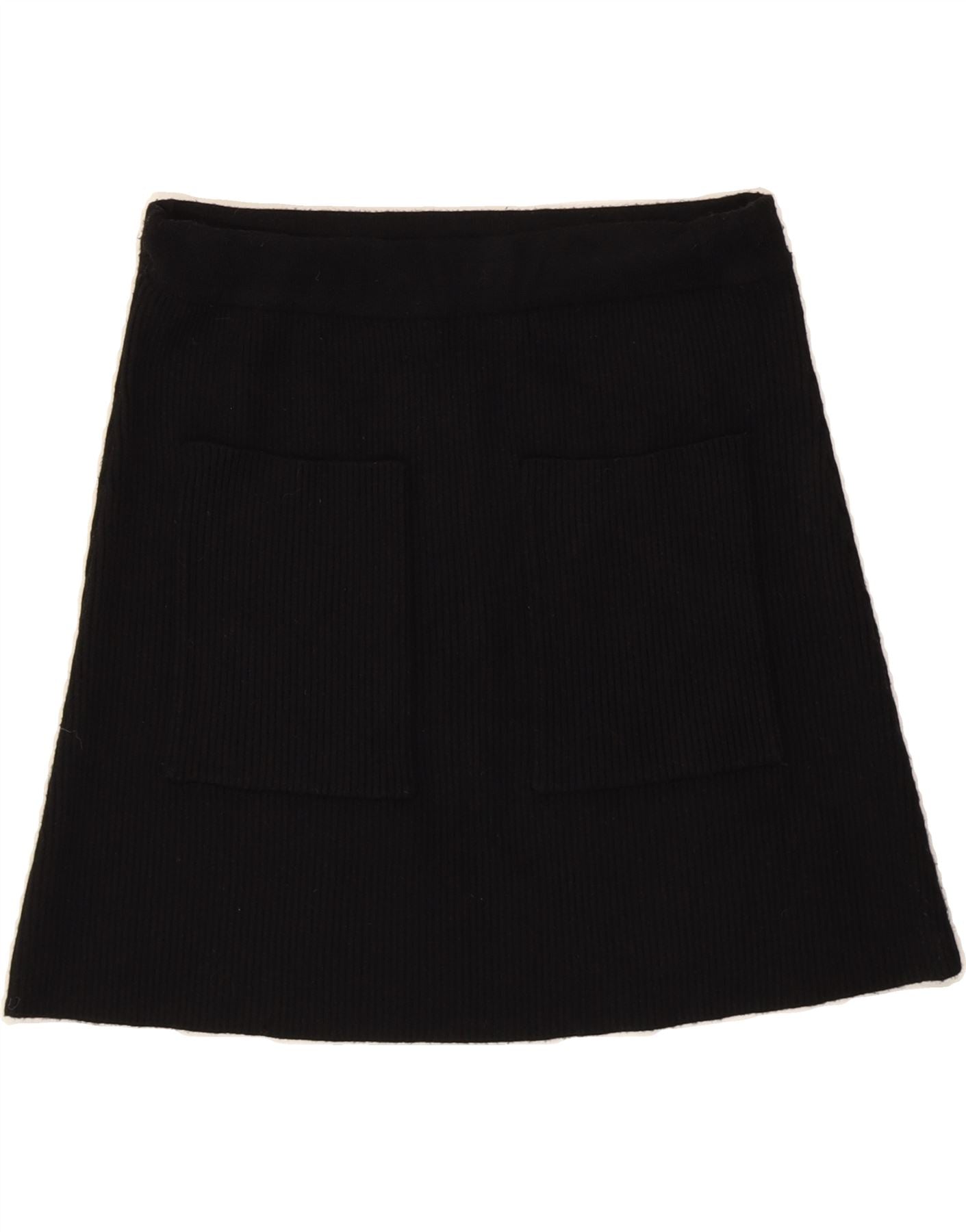 - AI Description: This Zara mini skirt offers a comfortable and stylish addition to your wardrobe. Crafted from a blend of viscose, nylon and polyester knit, it features an elastic waist and practical pockets. The black skirt is a size L with a regular fit, making it easy to wear with a simple pull-on closure. Pre-owned, but in excellent condition.