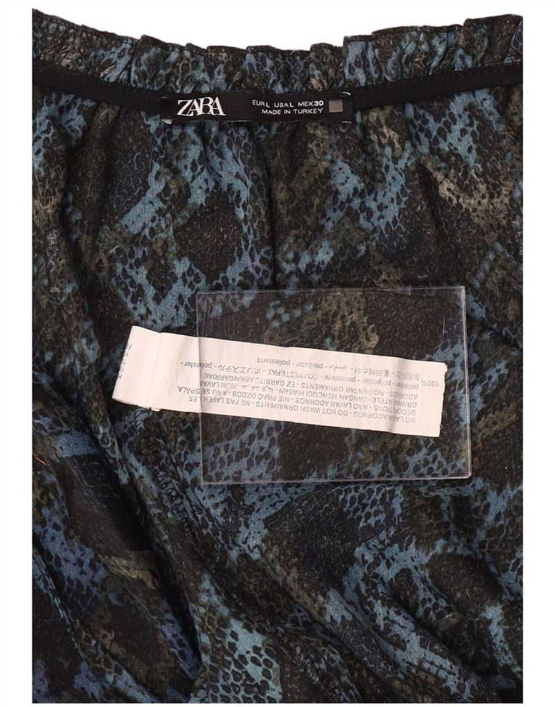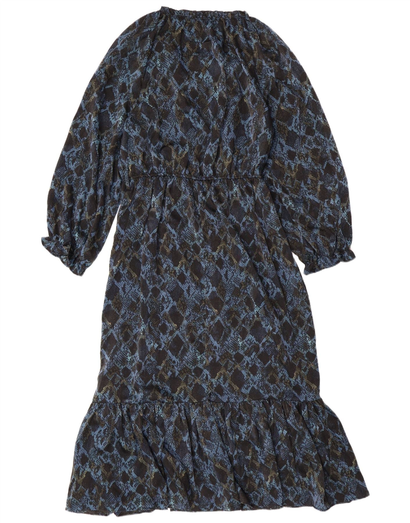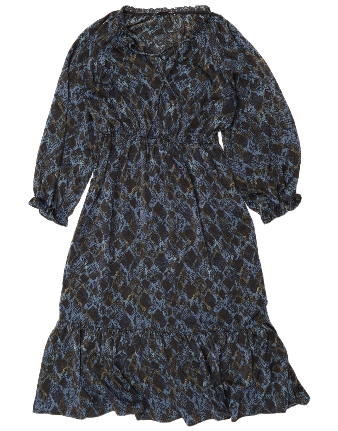 ZARA Womens Abstract Pattern Long Sleeve A-Line Dress UK 16 Large Blue