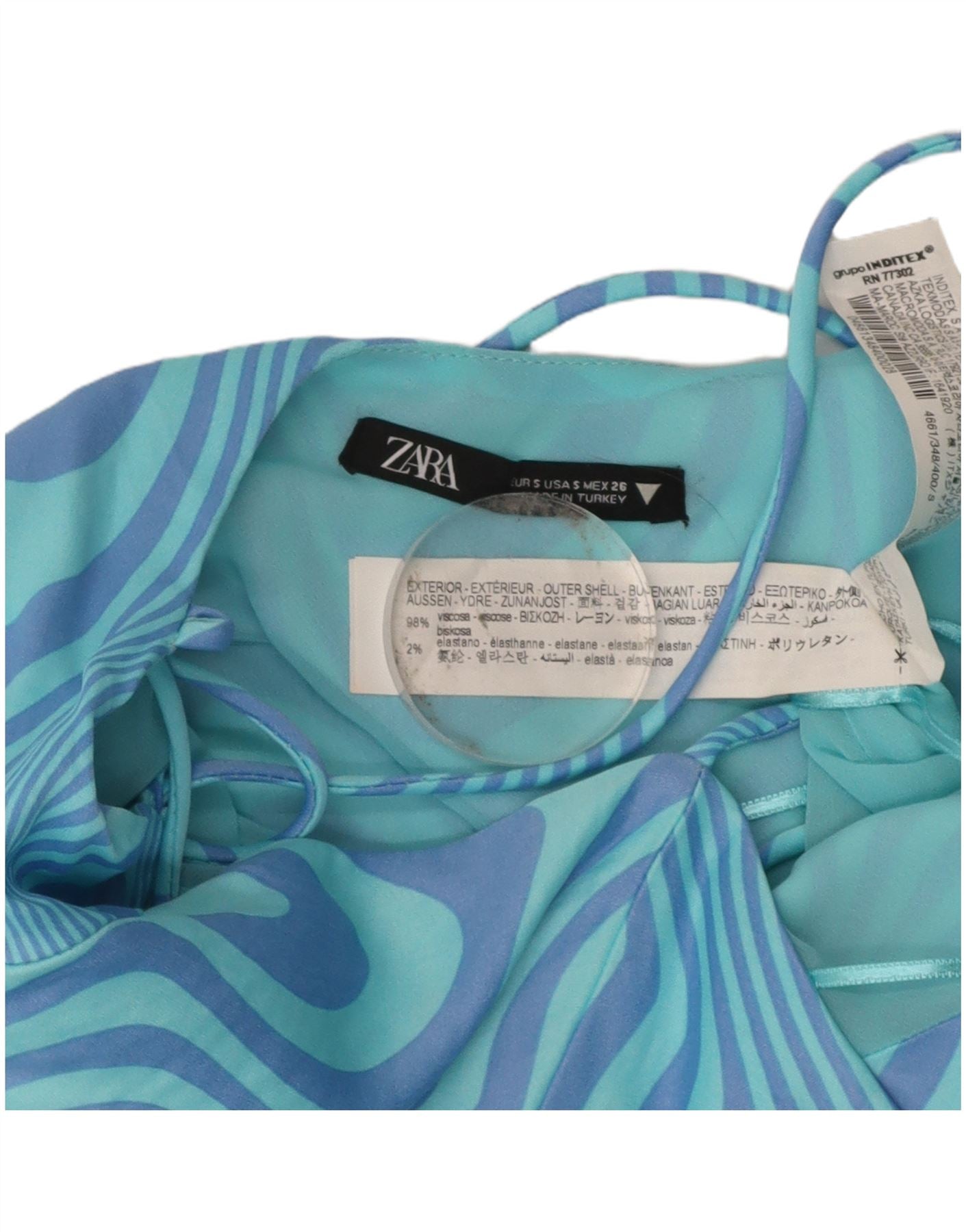 ZARA Womens Abstract Pattern Slip Dress UK 8 Small Blue Viscose