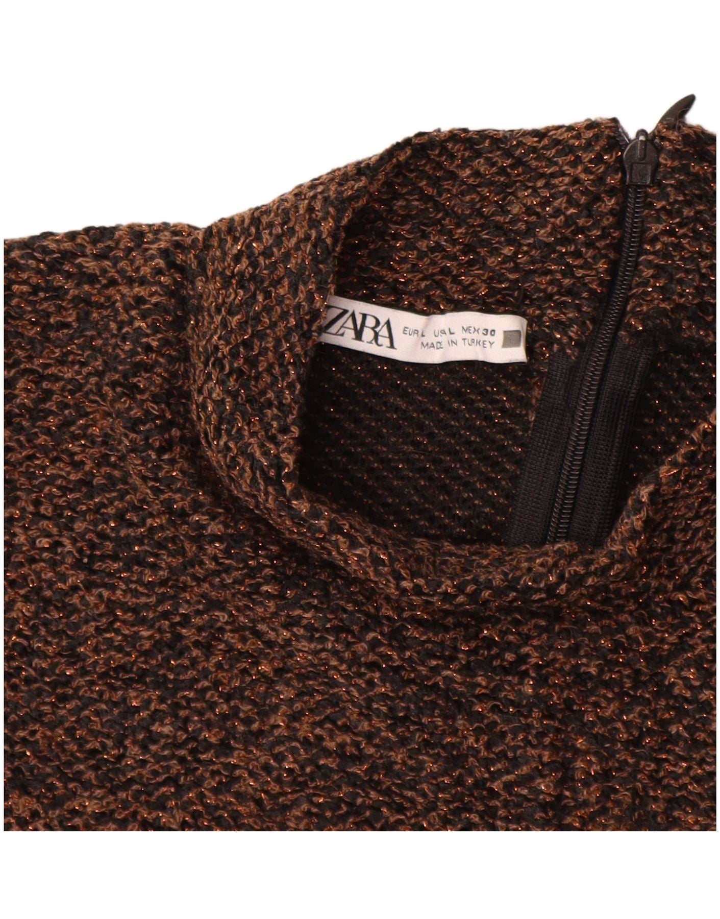 ZARA Womens Blouse Top UK 14 Large Brown Polyester