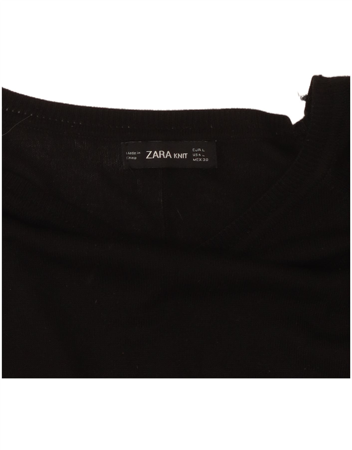 ZARA Womens Boat Neck Jumper Sweater UK 14 Large Black Synthetic