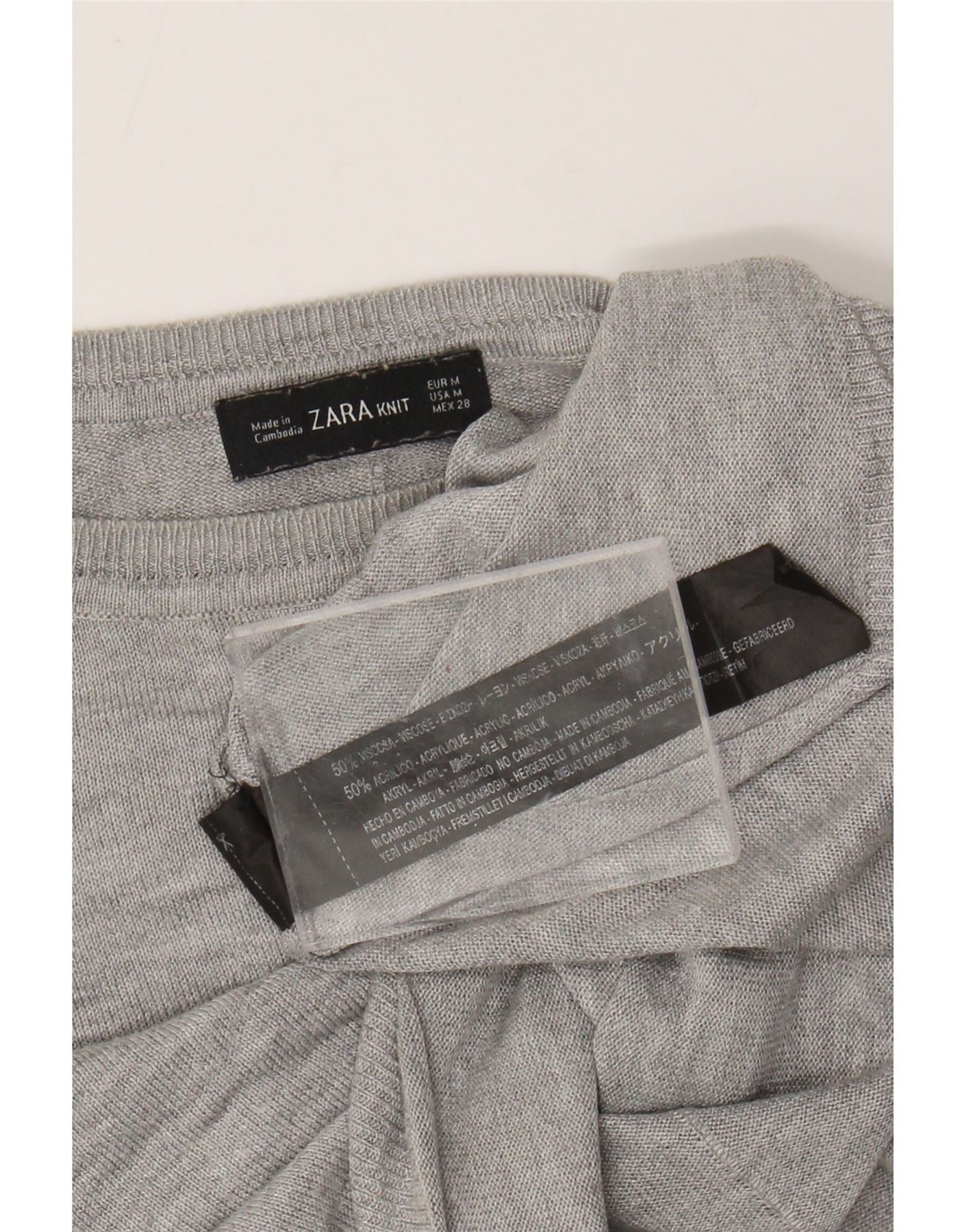 ZARA Womens Boat Neck Jumper Sweater UK 14 Medium Grey Flecked Viscose