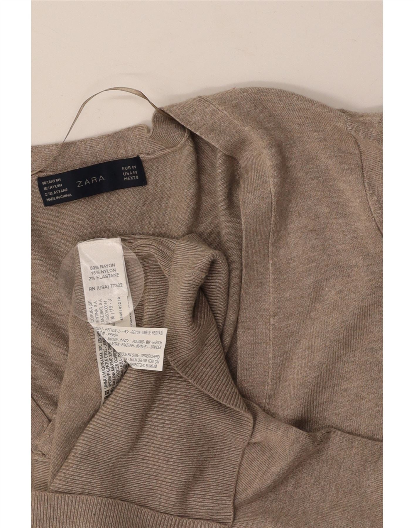 ZARA Womens Cardigan Sweater UK 14 Medium Beige Rayon