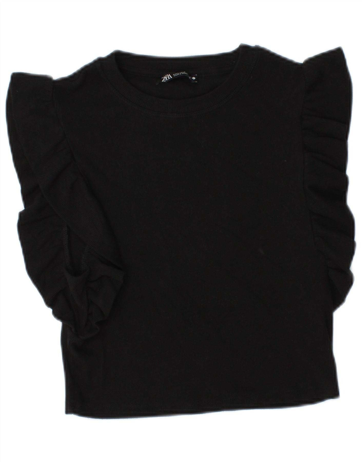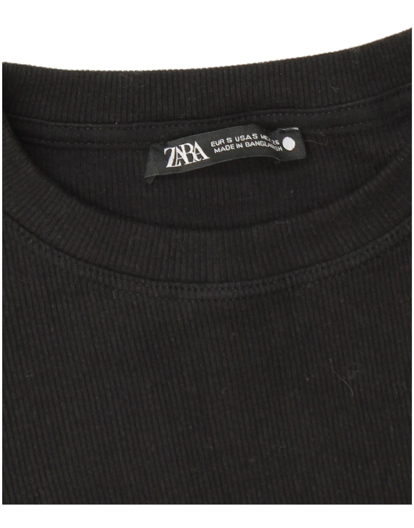 Zara Womens Crop Blouse Top UK 8 Small Black Cotton