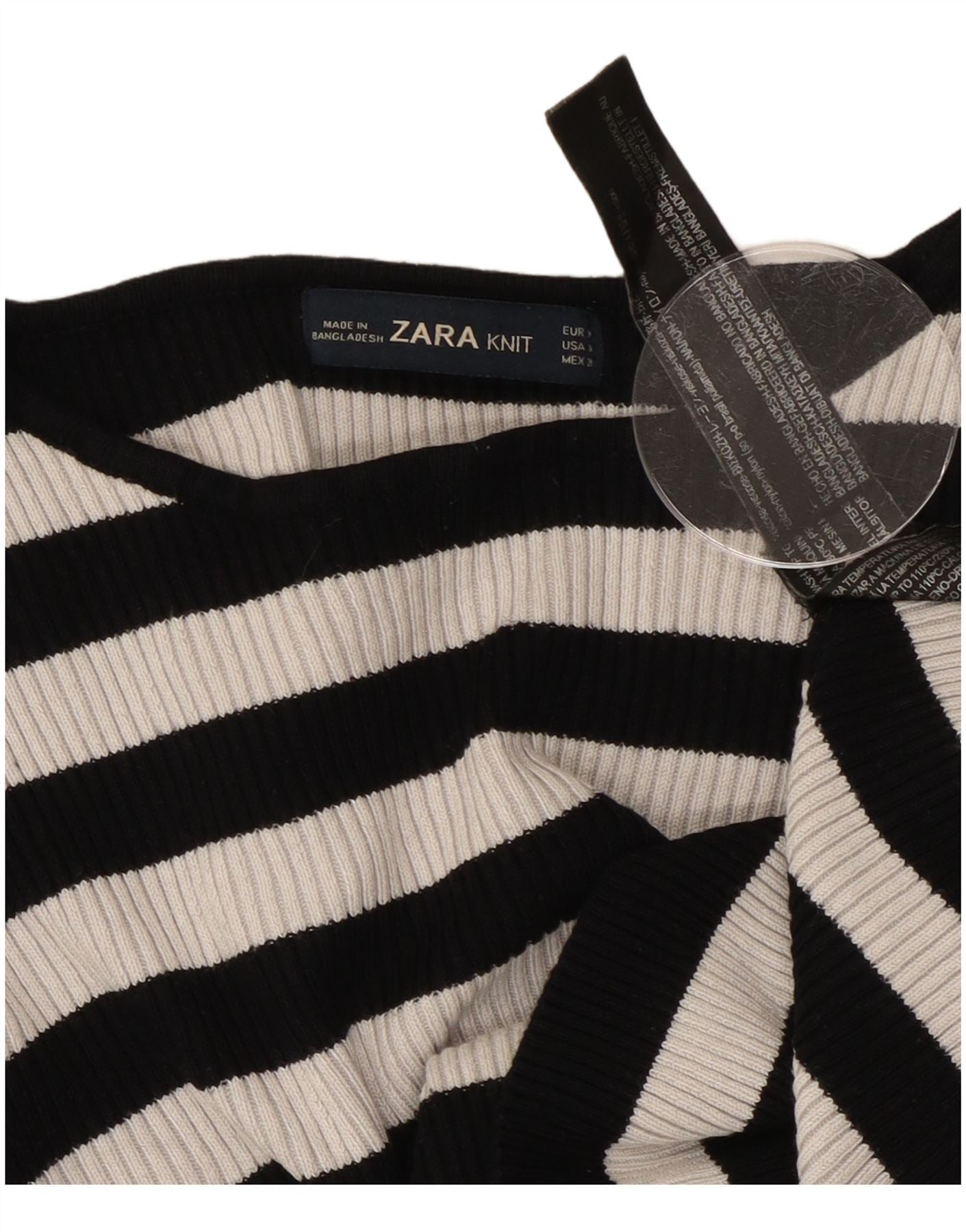 ZARA Womens Crop Boat Neck Jumper Sweater UK 12 Medium Black Striped