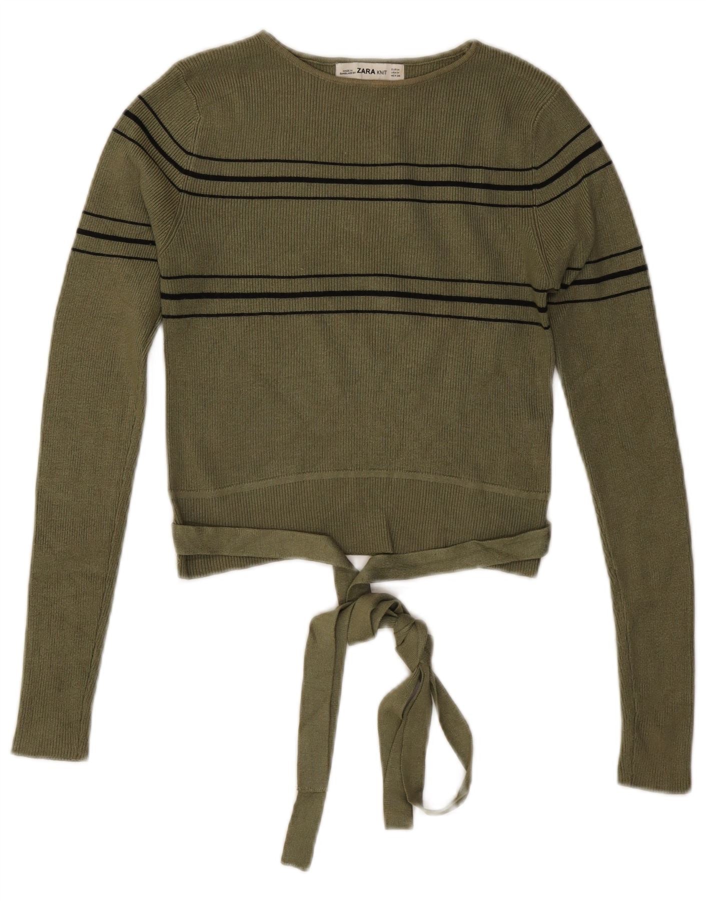 Home > Women's > Depop Clothing > ZARA Womens Crop Boat Neck Jumper Sweater UK 12 Medium Khaki Striped