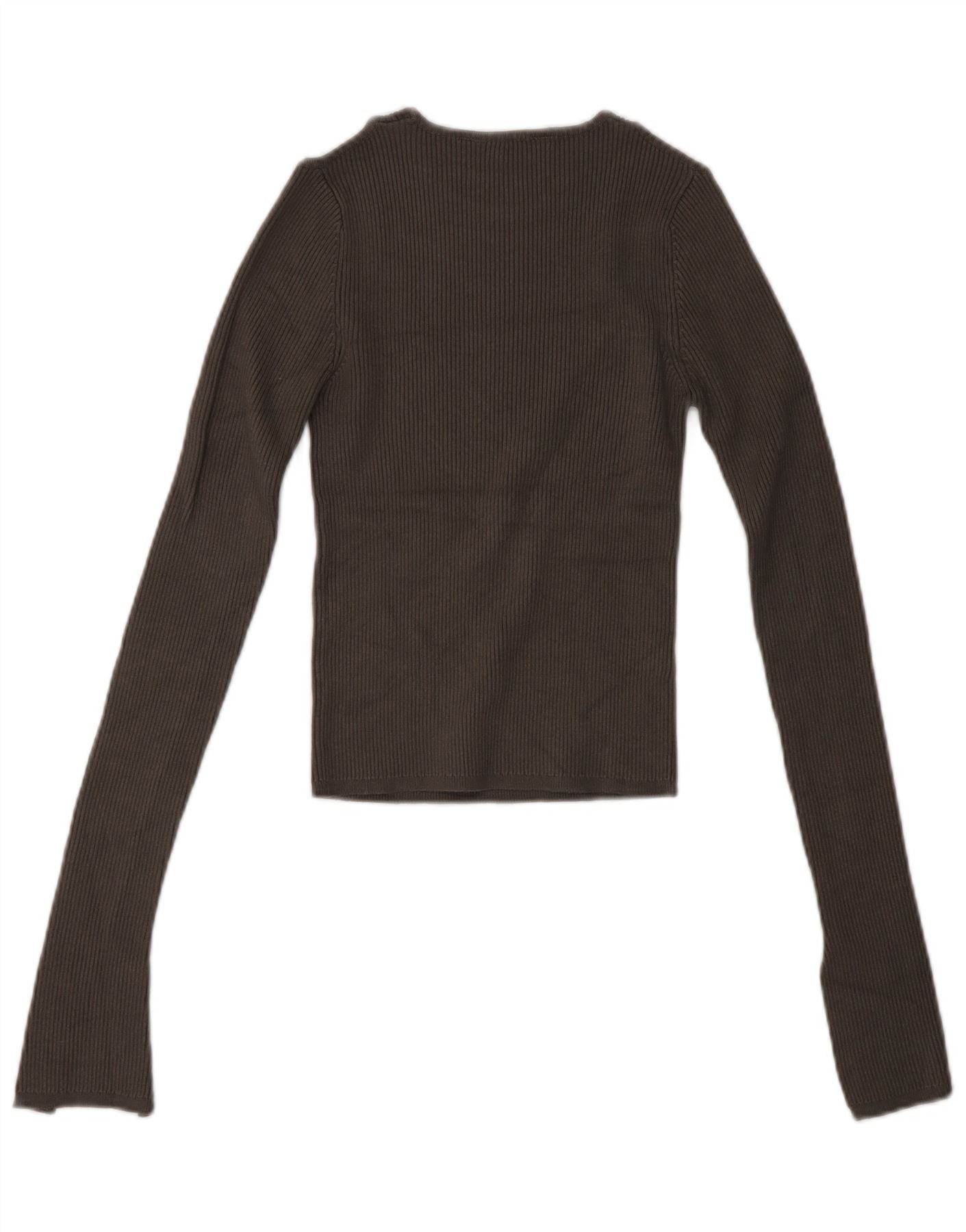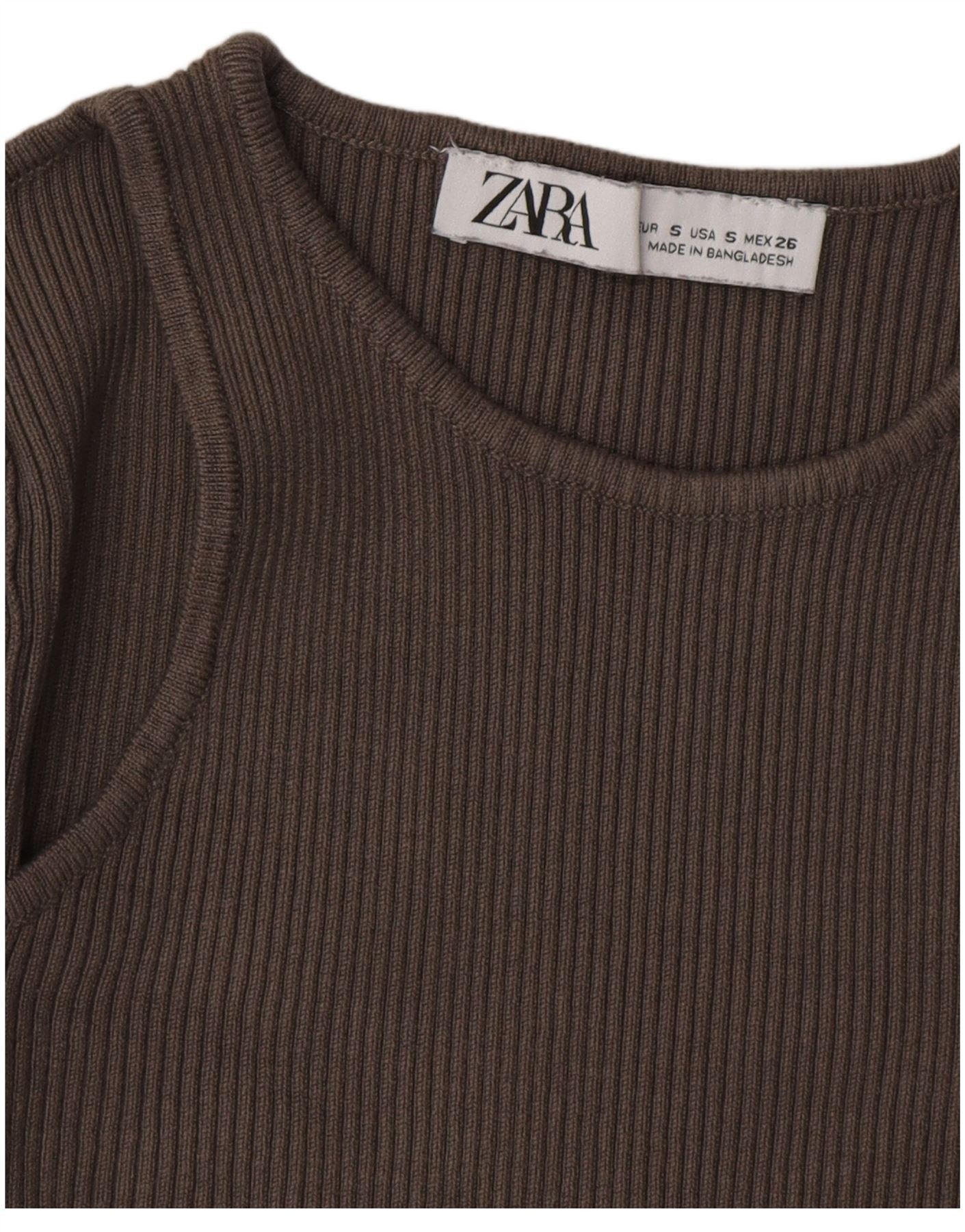 ZARA Womens Crop Boat Neck Jumper Sweater UK 8 Small Brown