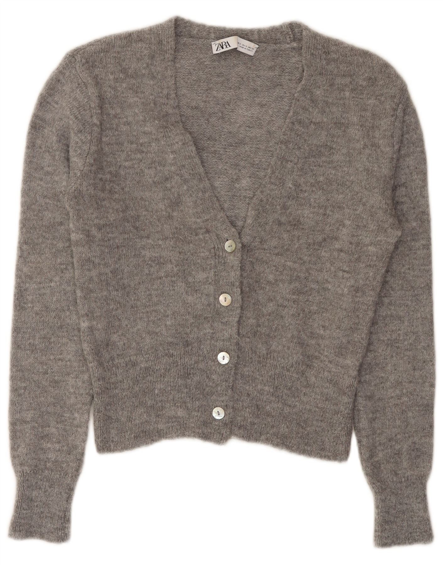 ZARA Womens Crop Cardigan Sweater UK 10 Small Grey Acrylic