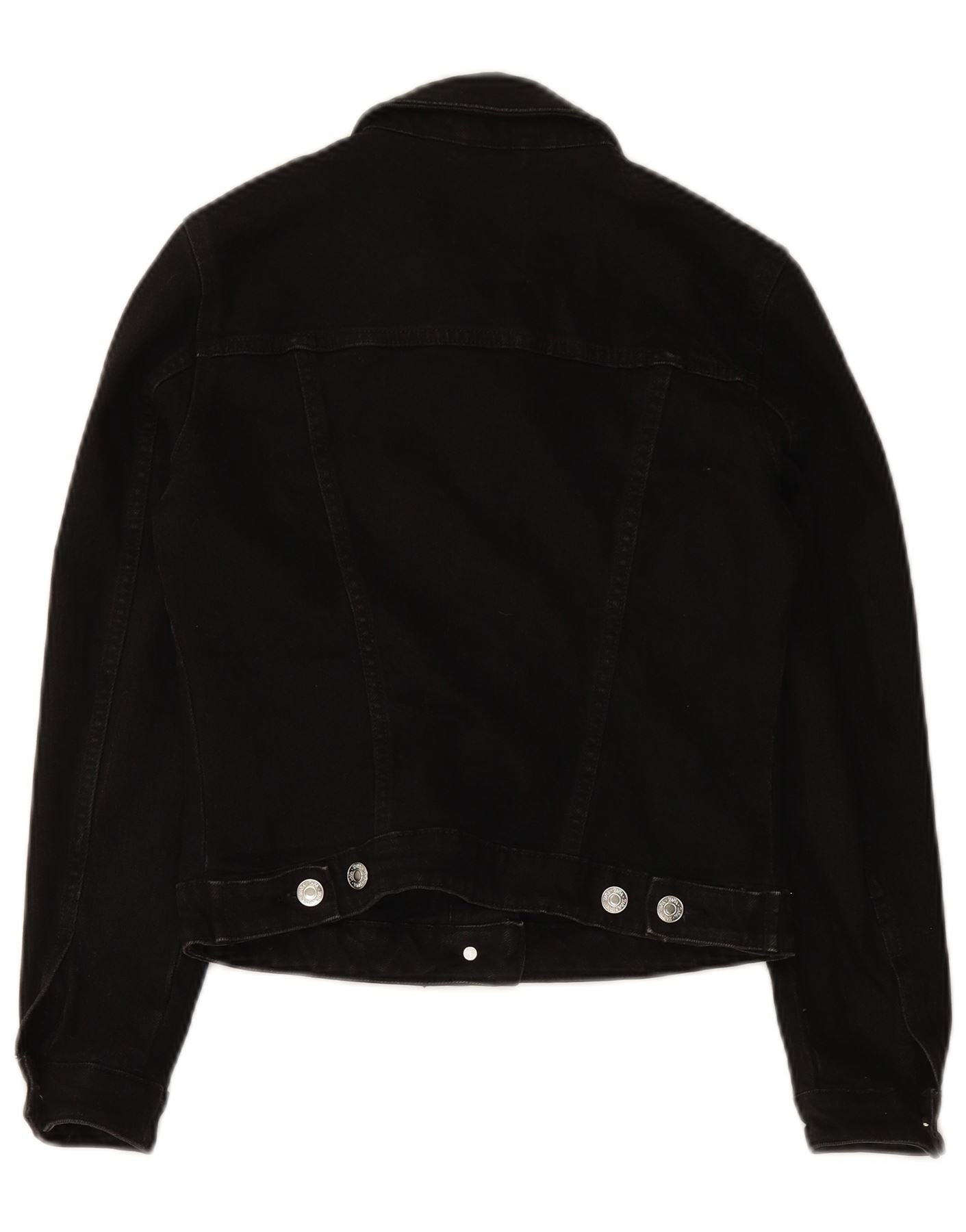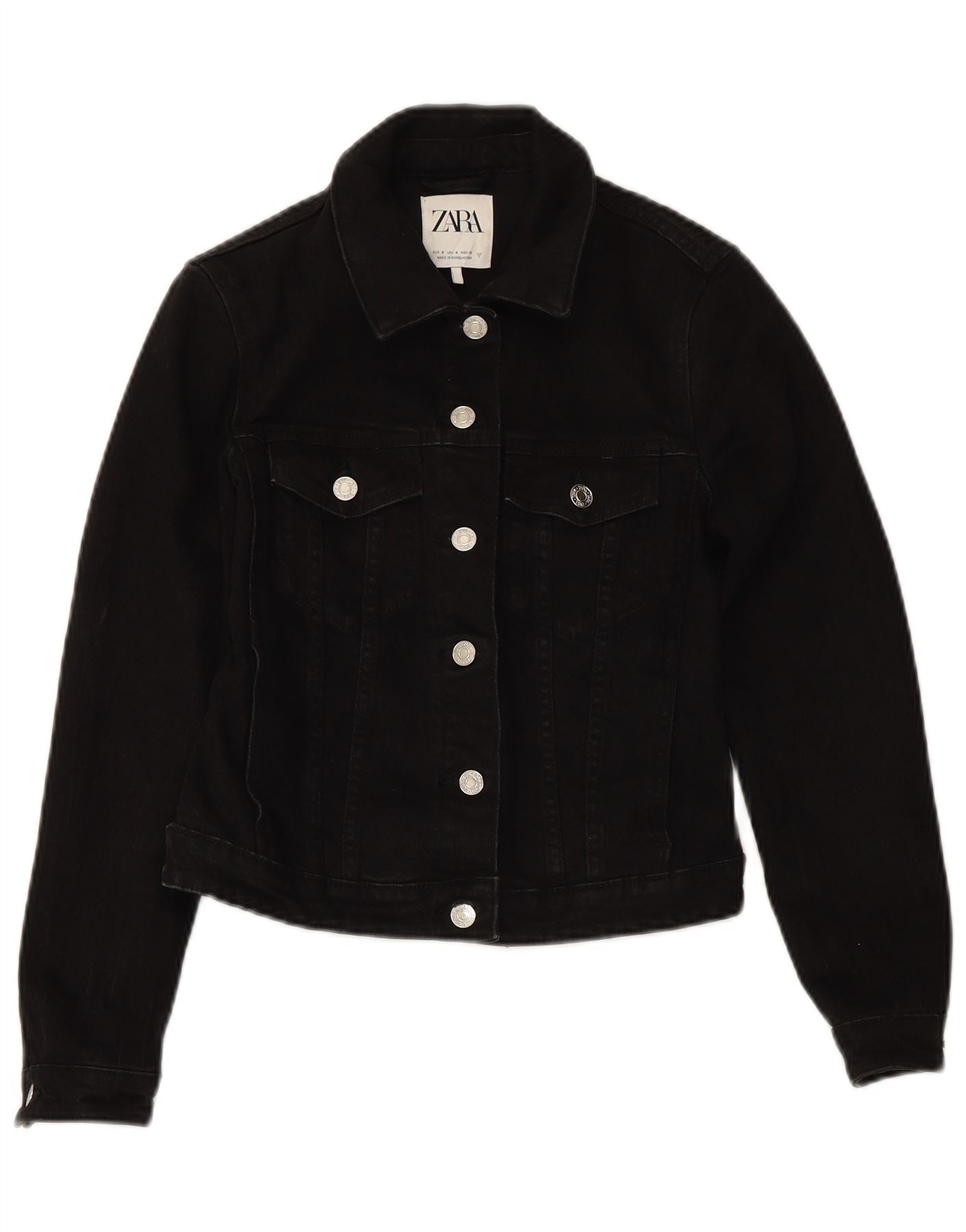 ZARA Womens Crop Denim Jacket UK 10 Small Black Cotton
