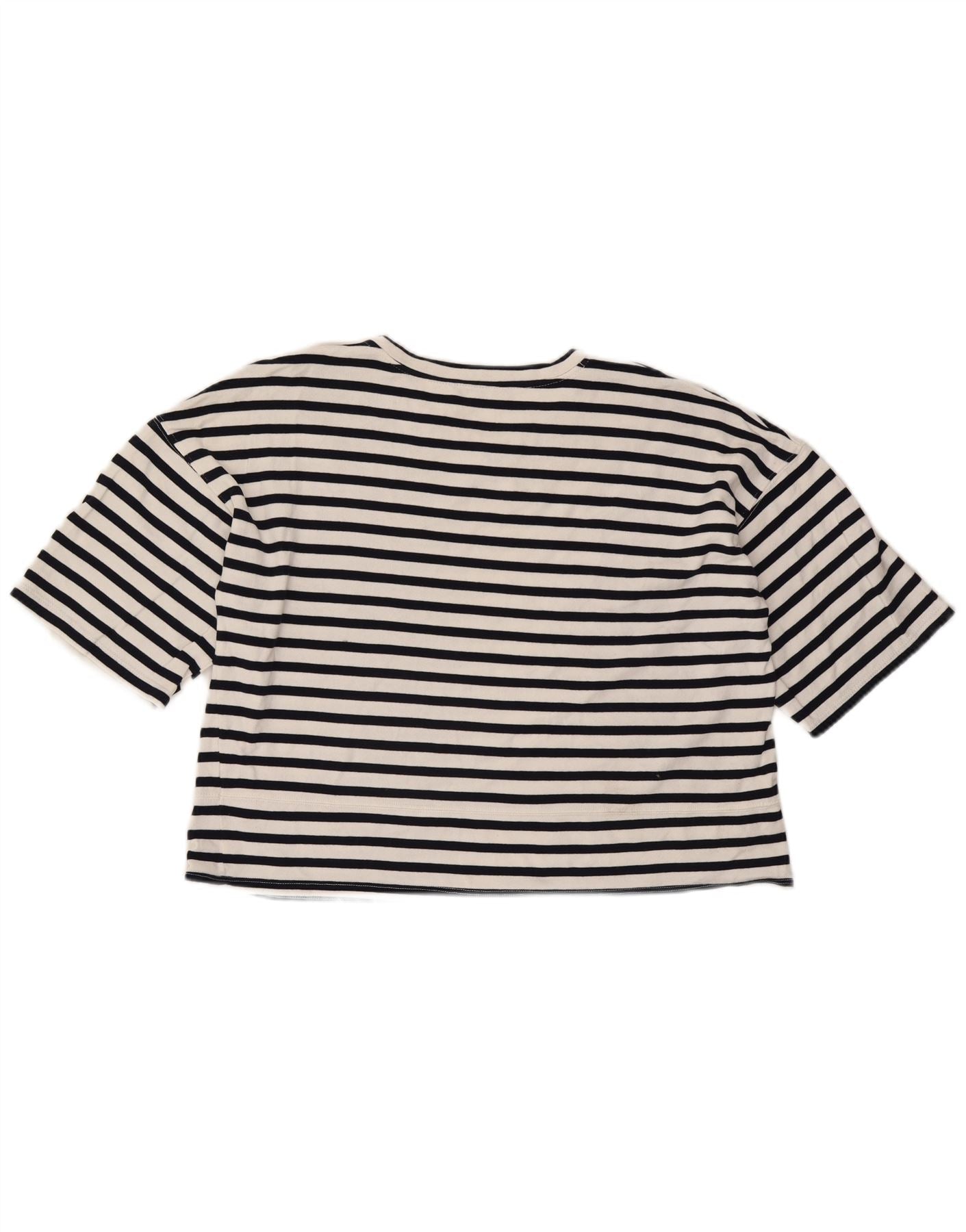 Zara Womens Crop T-Shirt Top UK 16 Large White Striped