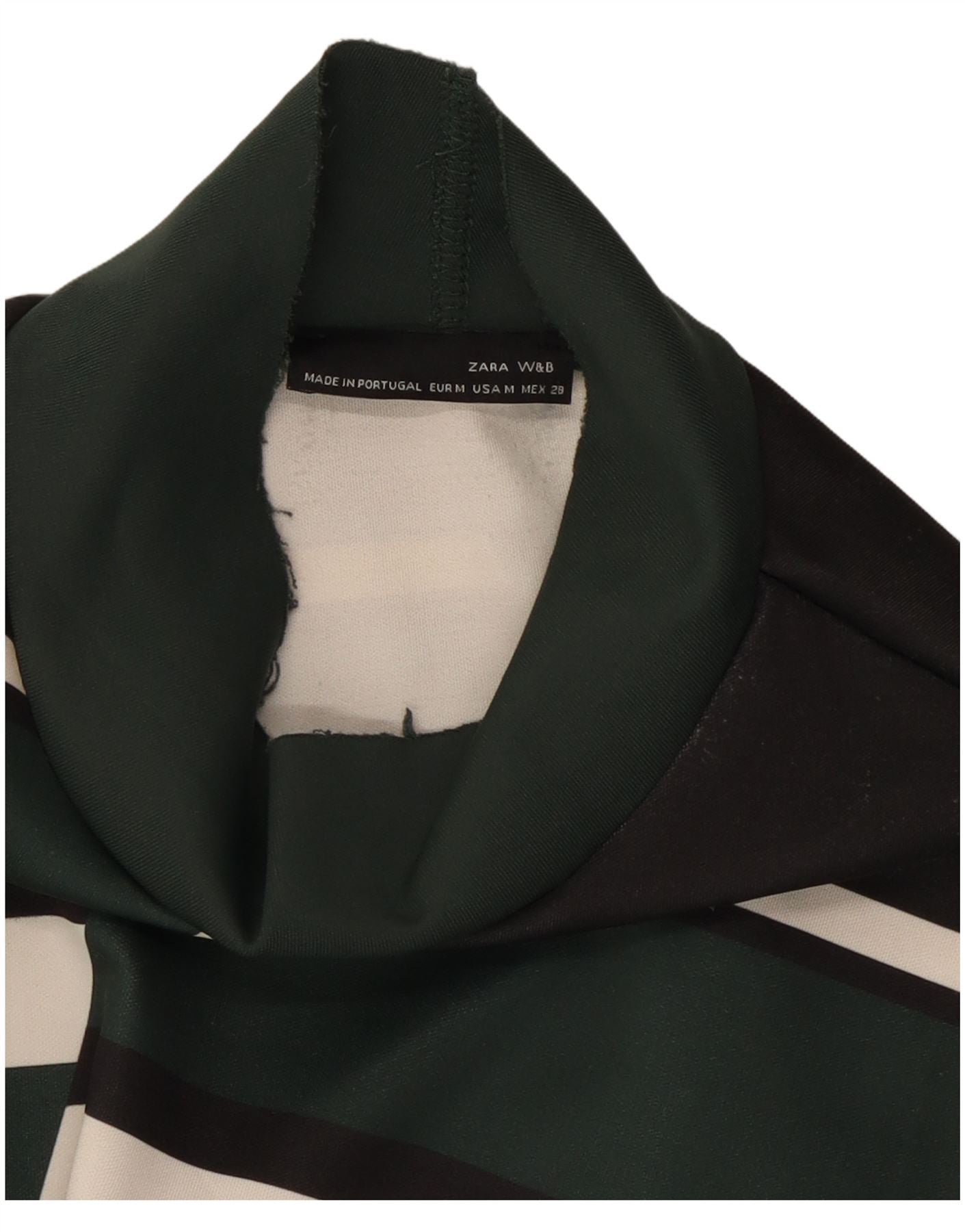 ZARA Womens Crop Top 3/4 Sleeve UK 12 Medium Green Colourblock